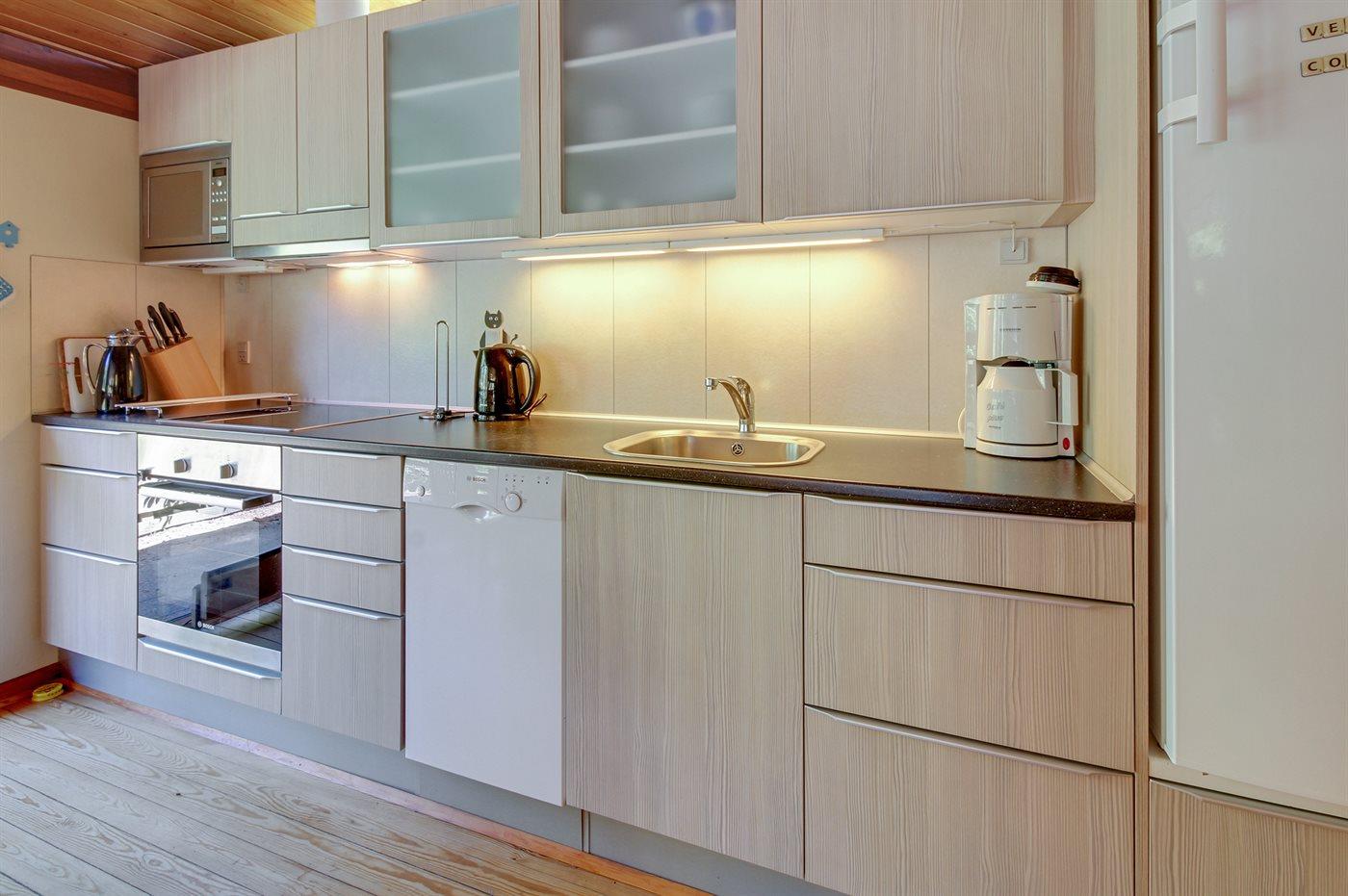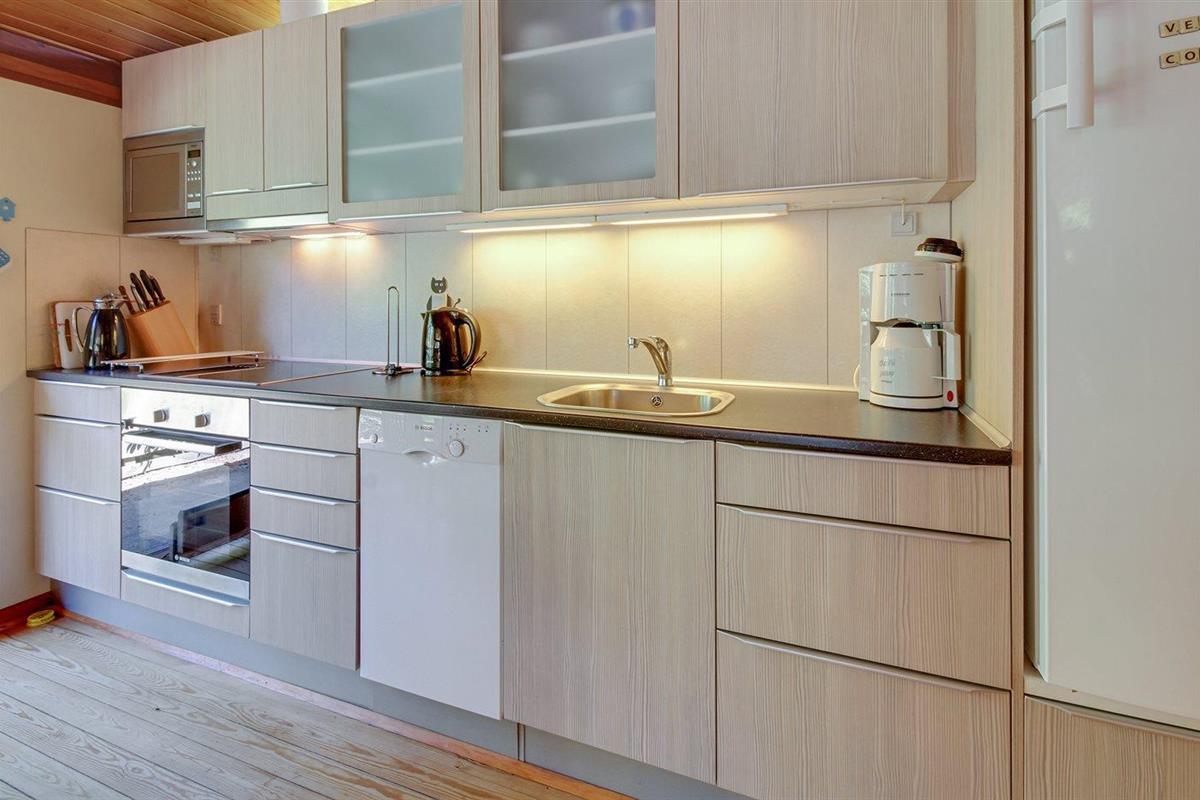 De keuken is uitgerust met koelkast Er zijn 4 keramische kookplaten, heteluchtoven, magnetron en vaatwasser.