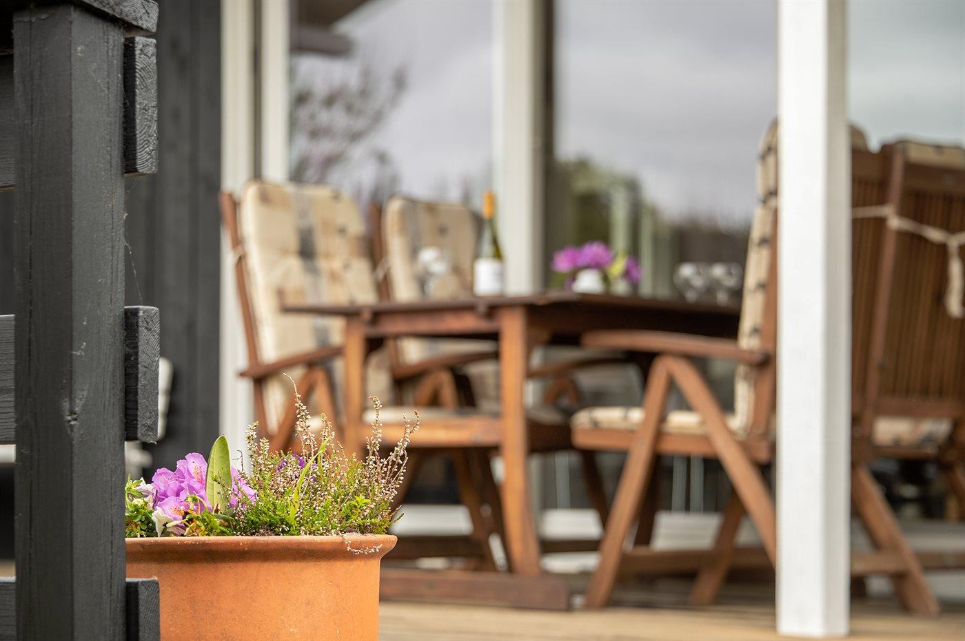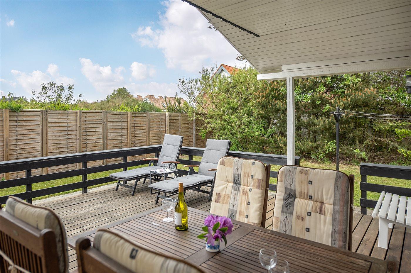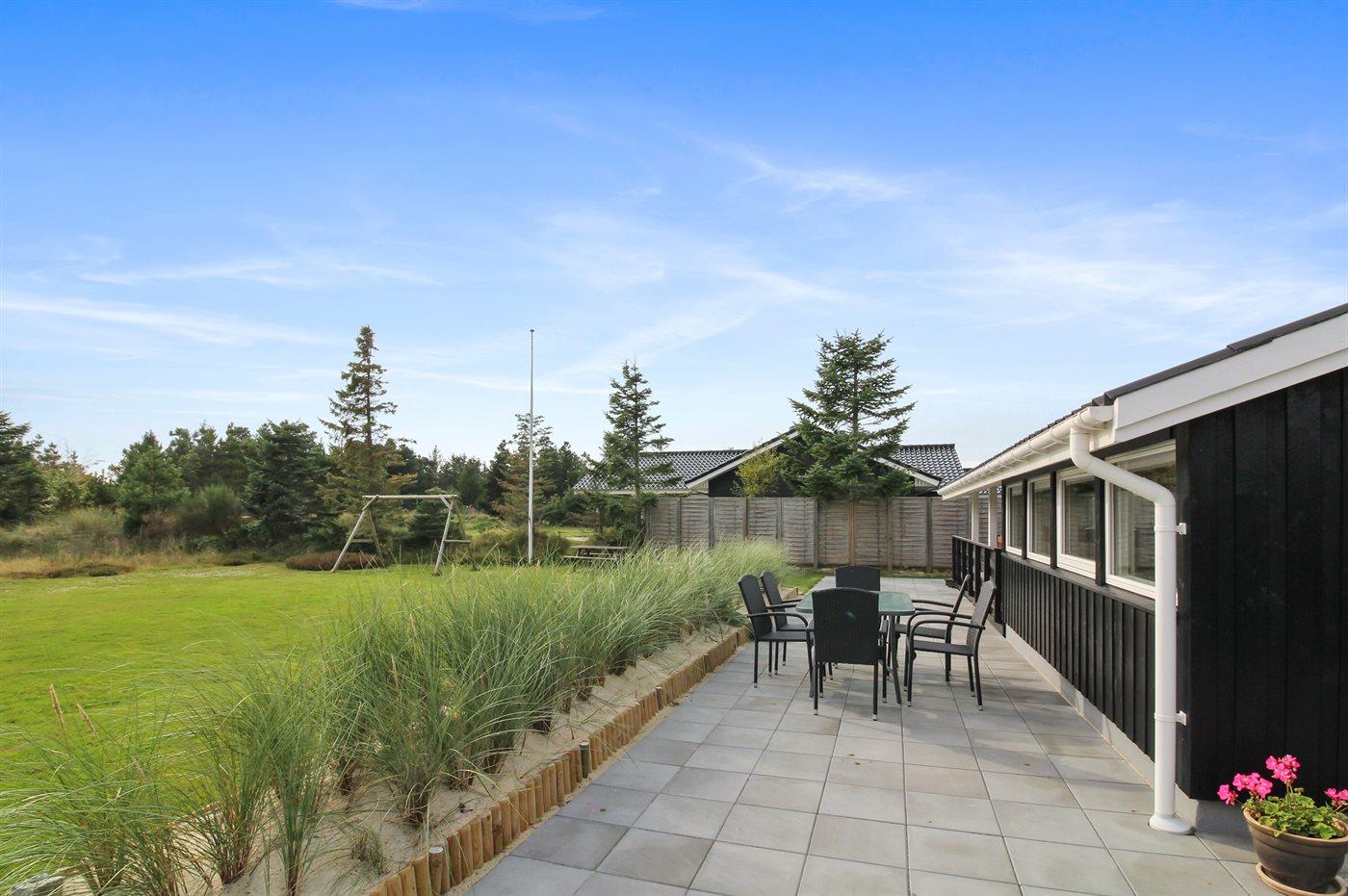 De vakantiewoning is gelegen op een 2174 m² groot natuural grond. Afstand tot de zee 900 m. Dichtstbijzijnde winkel 200 m. Bij de vakantiewoning hoort 20 m² terras. Daarnaast is er een 15 m² groot overdekt terras. Gereedschapsruimte. Schommel. Zandbak. Parkeerplaats bij het huis.