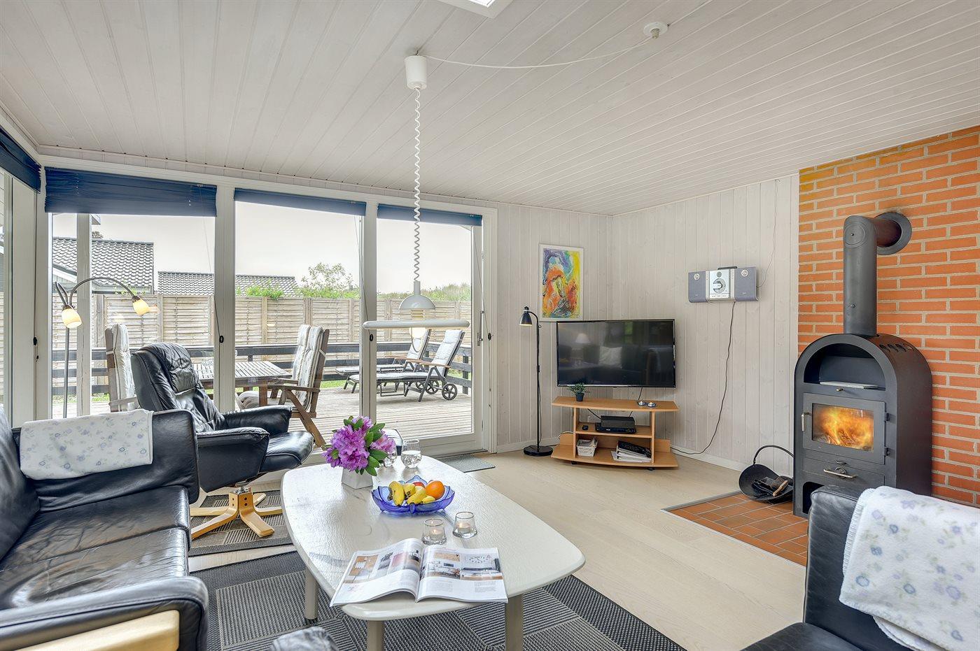 In de vakantiewoning is aanwezig televisie. DVD-speler. Stereo-installatie. CD-speler. Tenminste 4 deense zenders. Tenminste 4 duitse zenders. Draadloos internet.