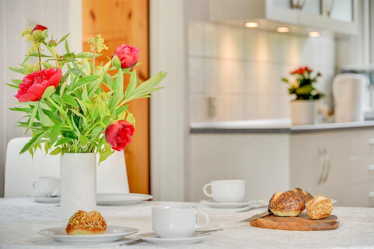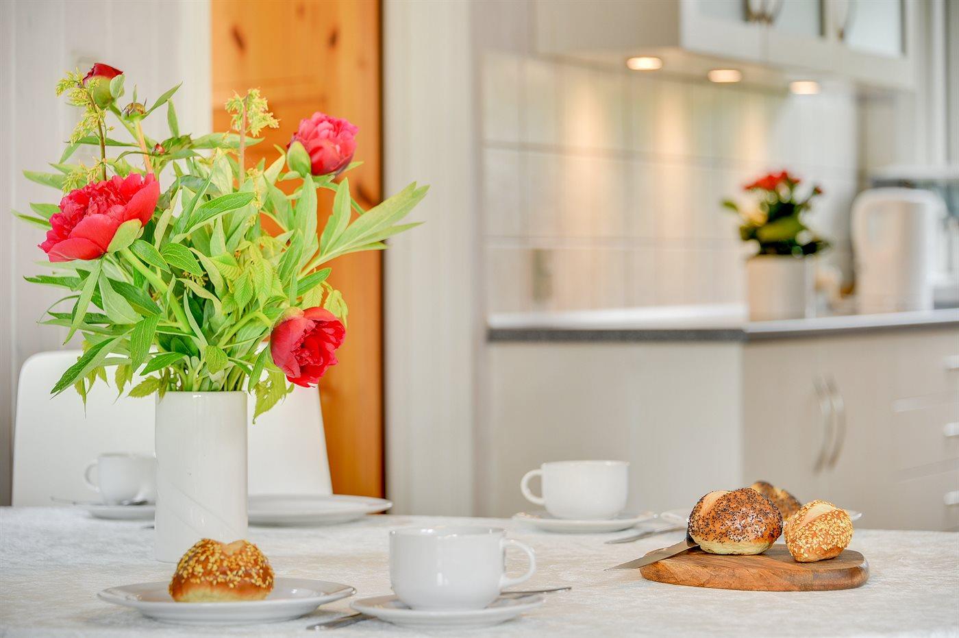 De keuken is uitgerust met koelkast Er is 4 elektrische kookplaten, bakoven, heteluchtoven, magnetron en vaatwasser.
