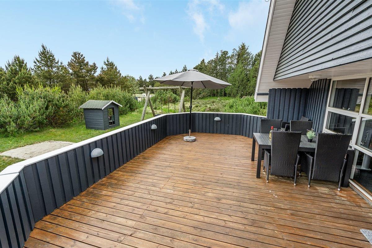 Gezellig vakantiehuis in Blåvand met groot terras, speelvoorzieningen en moderne faciliteiten voor een ontspannen verblijf.