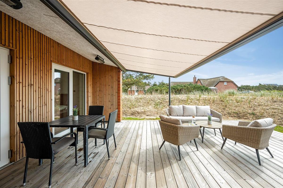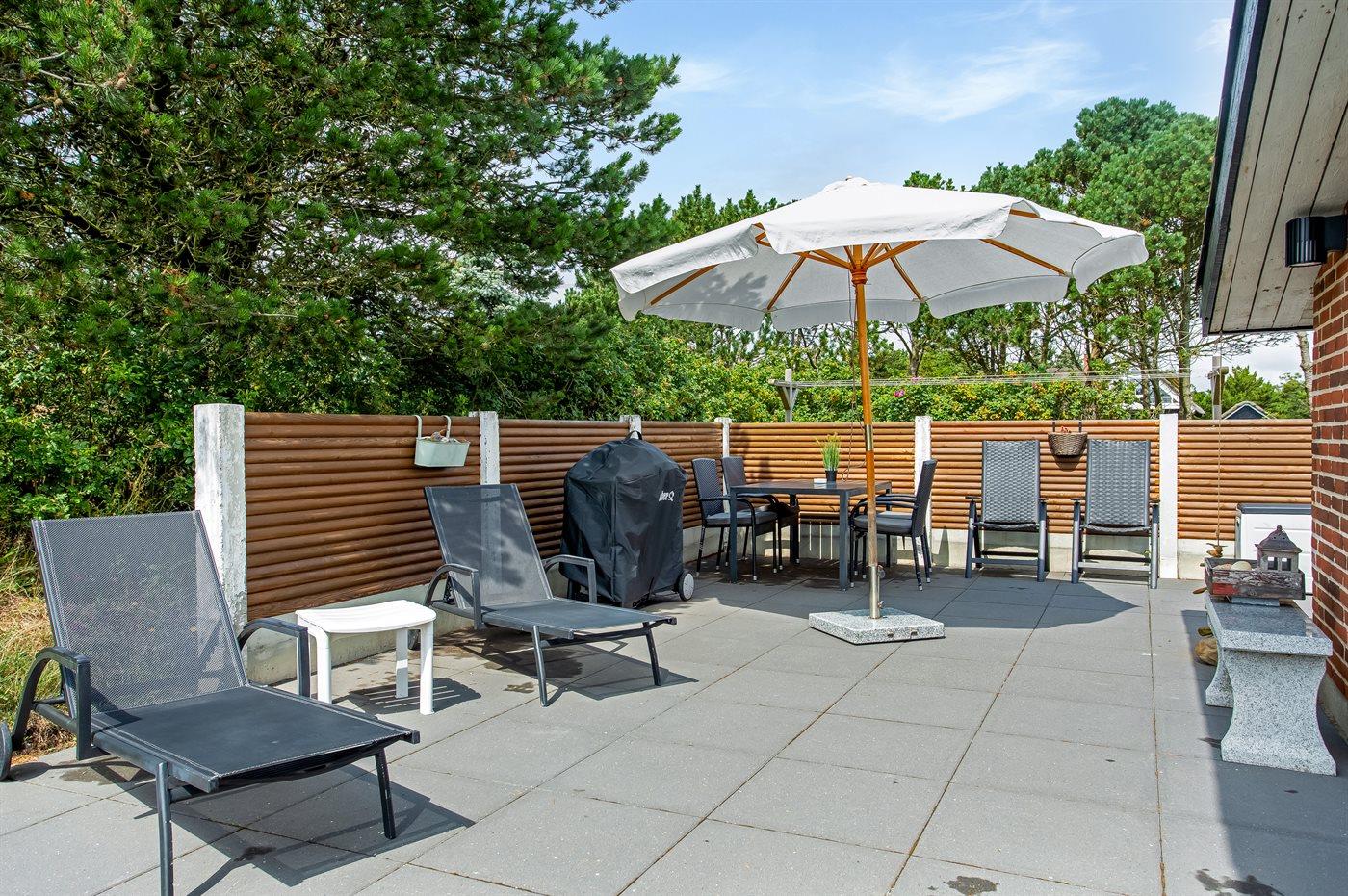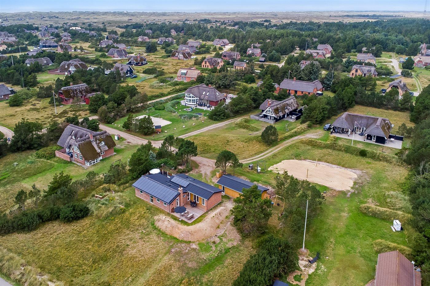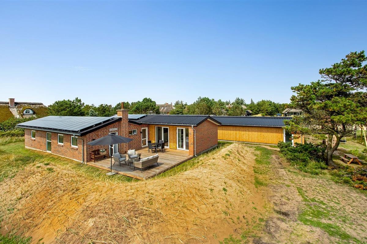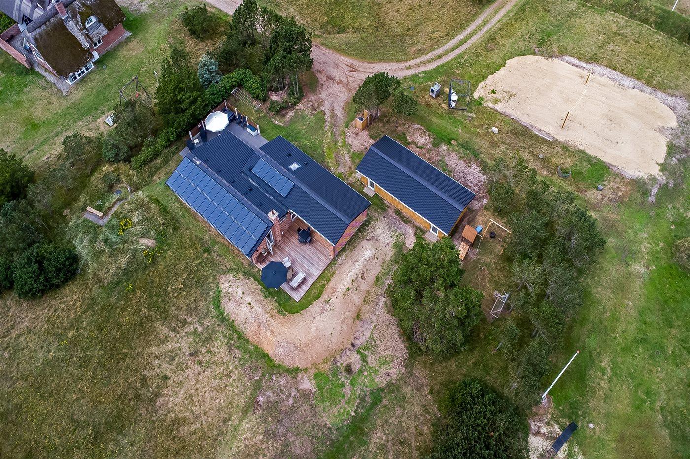 De vakantiewoning is gelegen op een 2500 m² groot natuural grond. Afstand tot de zee 200 m. Dichtstbijzijnde winkel 1000 m. Bij de vakantiewoning hoort 72 m² terras. Daarnaast is er een 22 m² groot overdekt terras. Gereedschapsruimte. Schommel. Zandbak. Speeltoren. Glijbaan. Buitendouche. Garage ter beschikking. Het huis heeft een stopcontact voor het opladen van een elektrische auto. Oplaadstekker type 2. Parkeerplaats bij het huis.