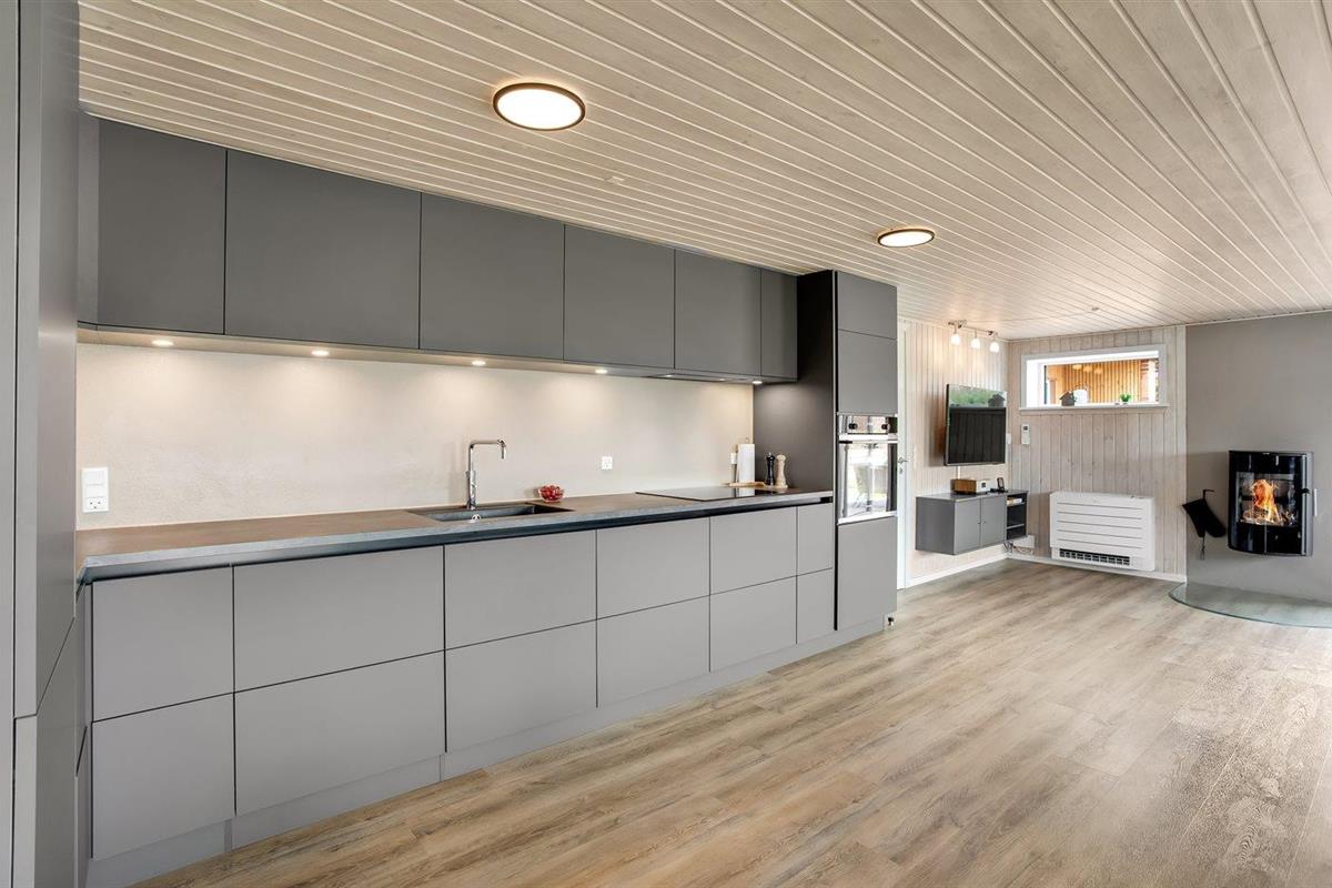 De keuken is uitgerust met koelkast Er is 4 inductiekookplaten, heteluchtoven, magnetron en vaatwasser.