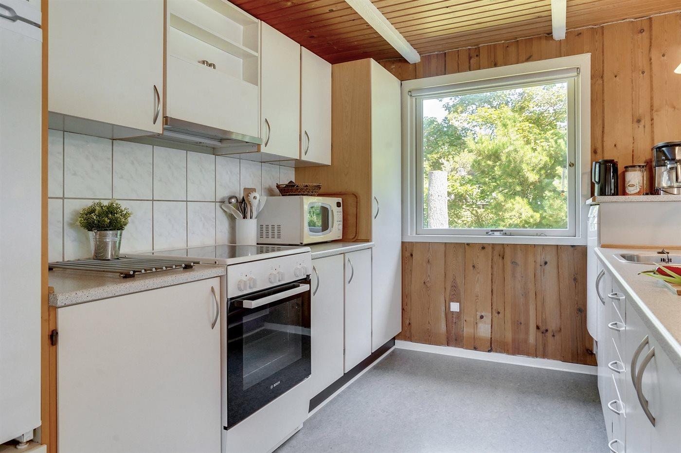 De keuken is uitgerust met koelkast Er is 4 elektrische kookplaten, heteluchtoven, magnetron en vaatwasser.