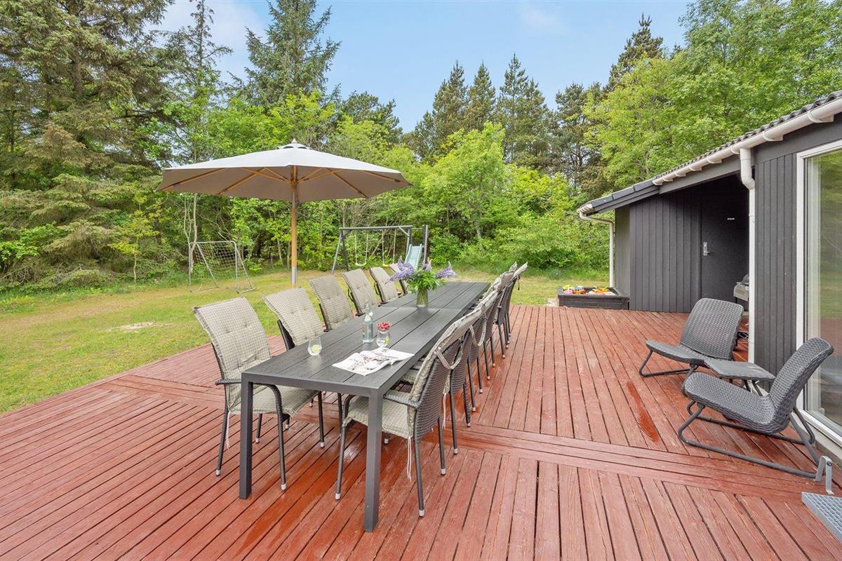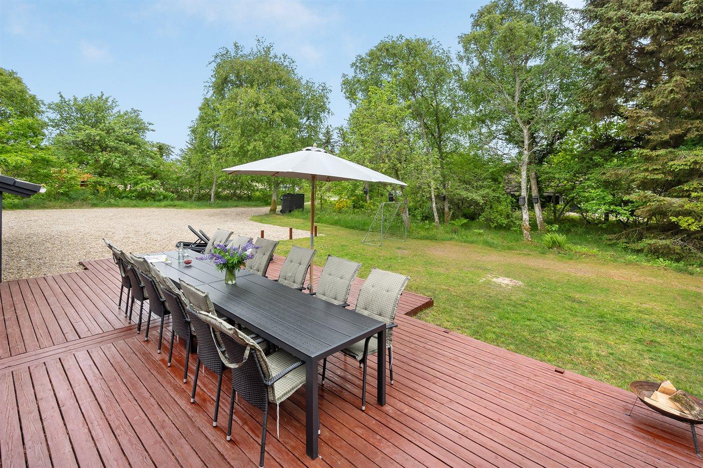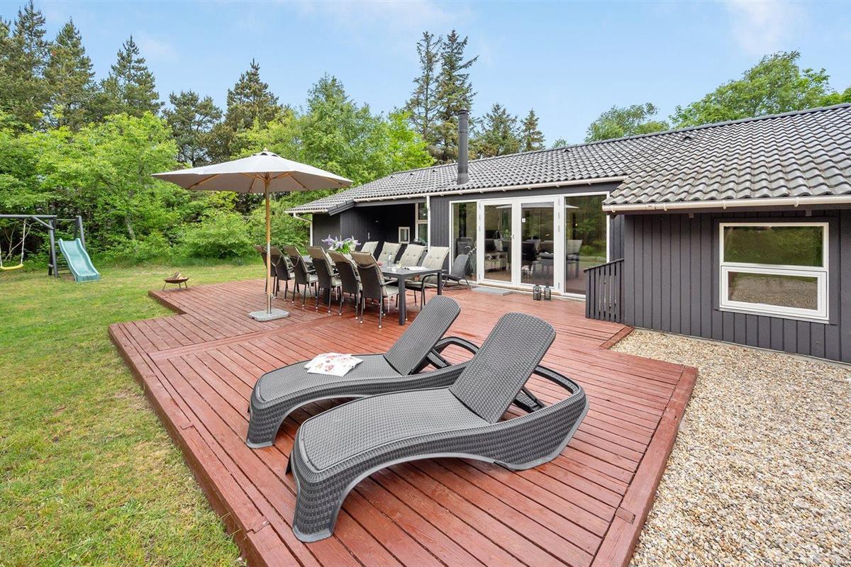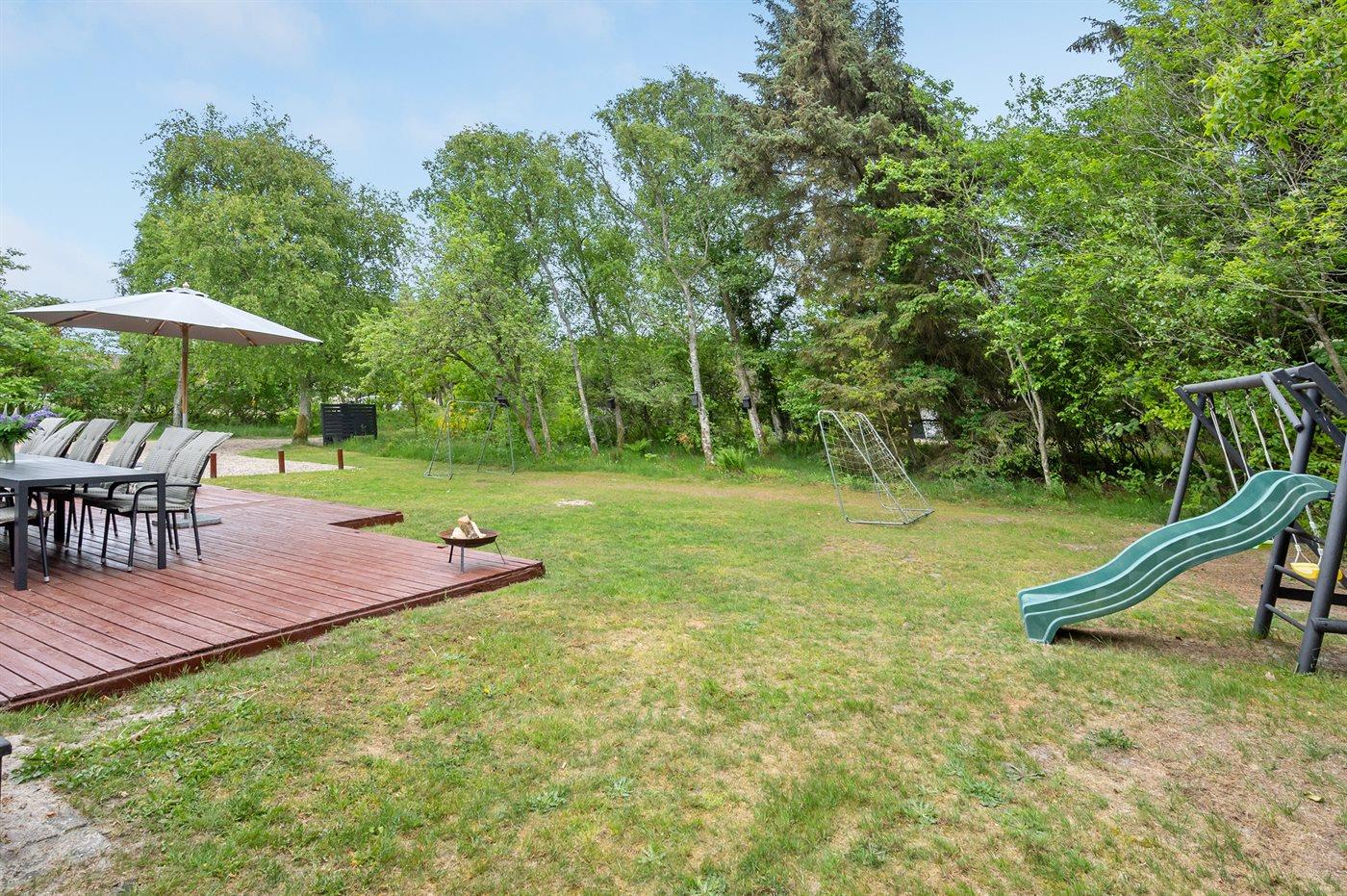 De vakantiewoning is gelegen op een 1800 m² groot natuural grond. Afstand tot de zee 1600 m. Afstand tot de fjord 4500 m.Afstand tot de waddenzee 7000 m. Dichtstbijzijnde winkel 1800 m. Bij de vakantiewoning hoort 51 m² terras. Schommel. Zandbak. Speeltoren. Glijbaan. Voetbaldoel. Barbecue. Parkeerplaats bij het huis.