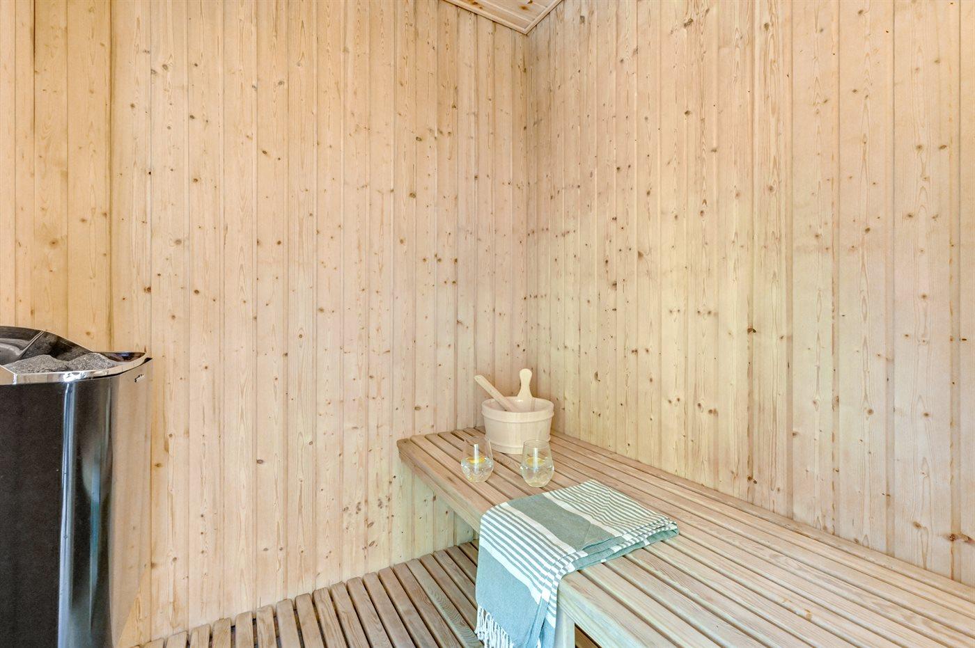 Er is 2 badkamers met douchehok en 2 toiletten. Er is vloerverwarming in 2 van de badkamers. De sauna biedt de gelegenheid tot ontspanning.