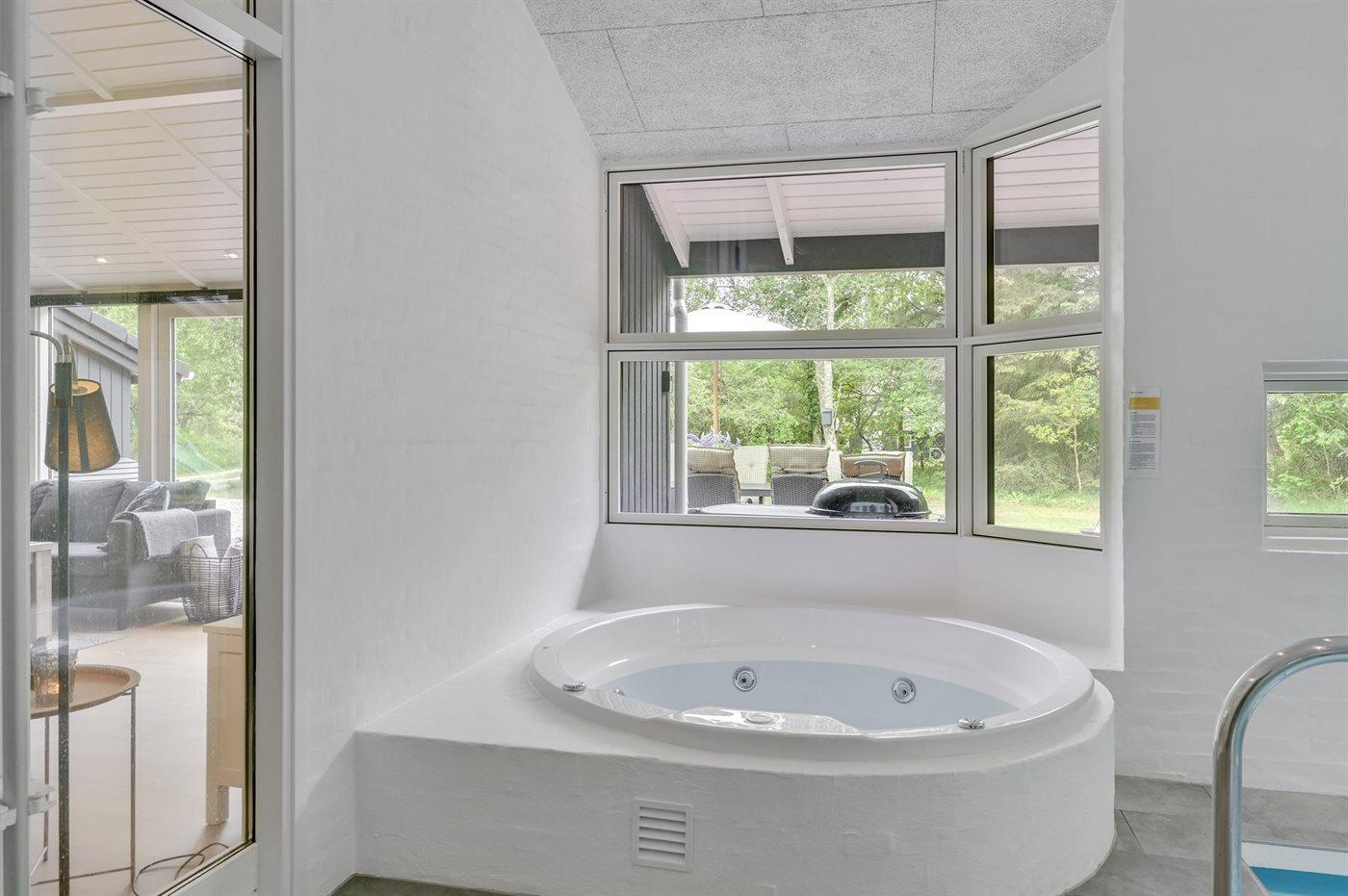 In het binnenbubbelbad (standwater) is plaats voor 6 personen.