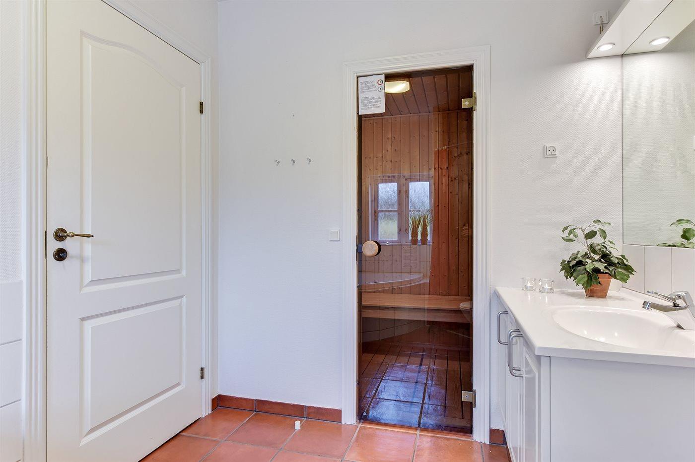 Er is 1 badkamer met douchehok en 1 toilet.. Er is vloerverwarming in 1 badkamer. De sauna biedt de gelegenheid tot ontspanning.