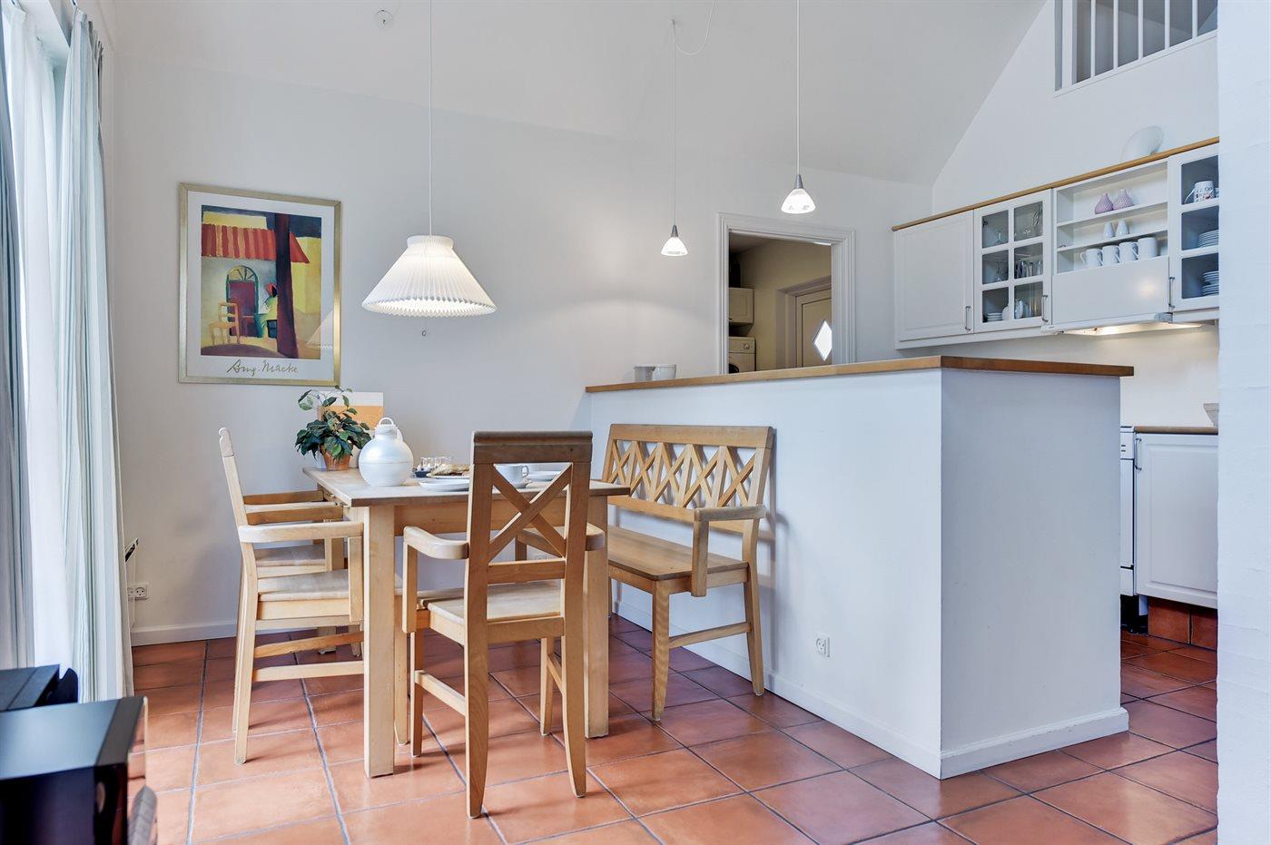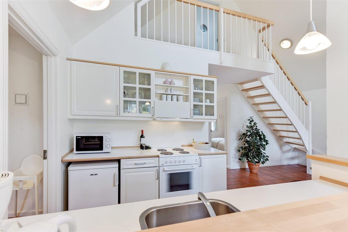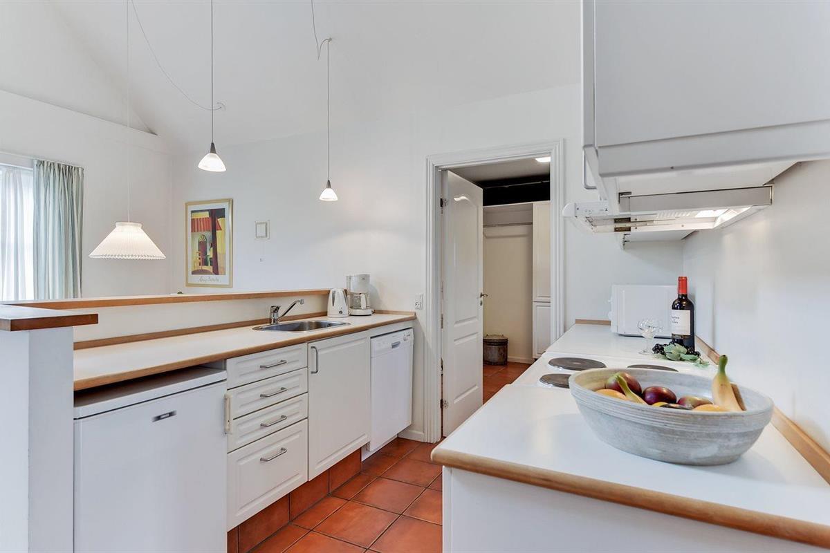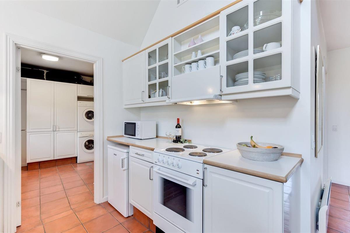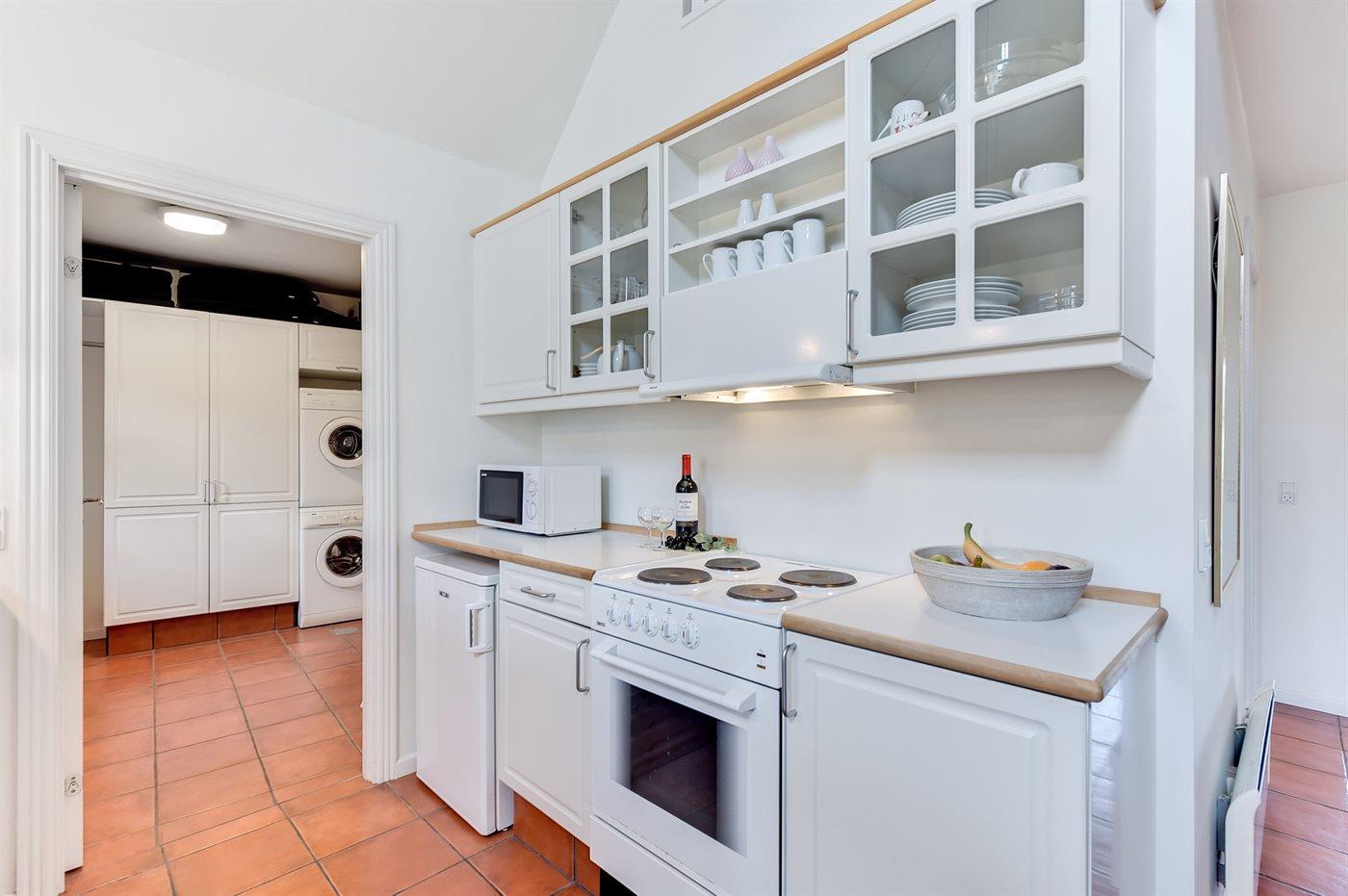 De keuken is uitgerust met koelkast Er is 4 elektrische kookplaten, bakoven, magnetron en vaatwasser.