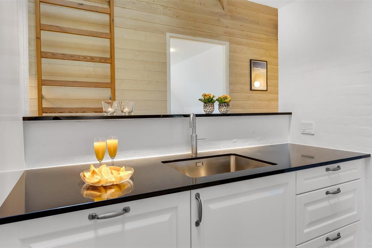 De keuken is uitgerust met koelkast Er zijn 4 keramische kookplaten, heteluchtoven, magnetron en vaatwasser.