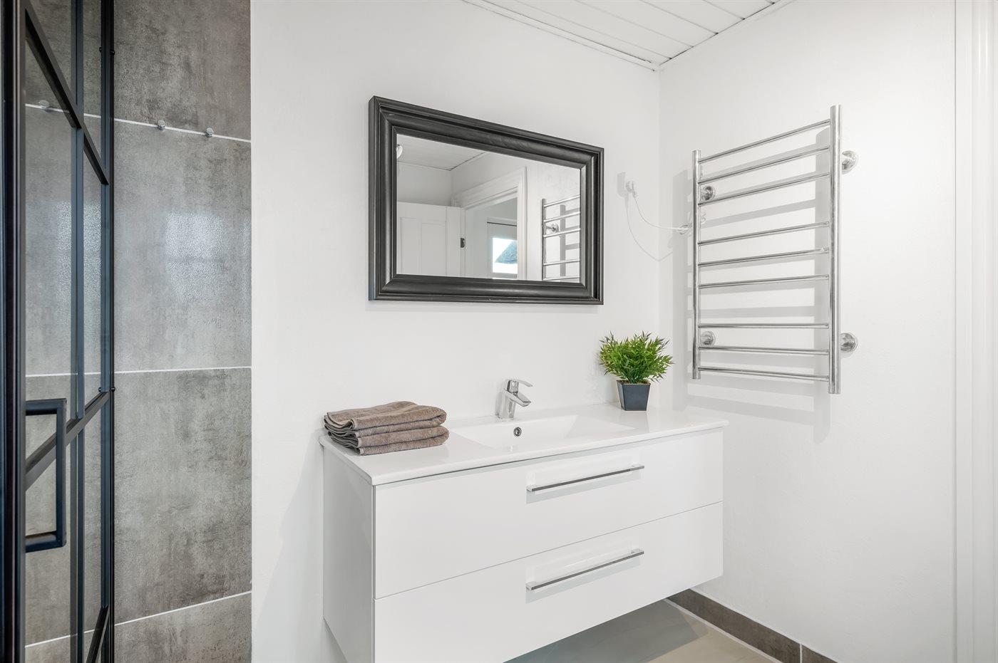 Er is 3 badkamers met douchehok en 3 toiletten. Er is vloerverwarming in 2 van de badkamers. De sauna biedt de gelegenheid tot ontspanning.