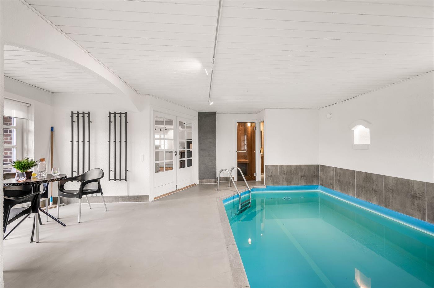 Het binnenzwembad biedt de gelegenheid om heerlijk te spelen en gezellig samen te zijn. Het zwembad is 3 m breed, 6 m lang en tot 1,3 m diep. Het water heeft een temperatuur tussen de 24 en 28 °C. Er is vloerverwarming in het zwembadgebied.
