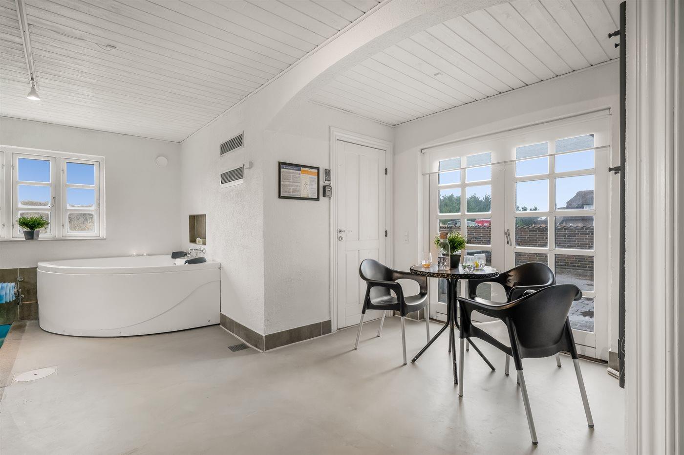 Het binnenbubbelbad (vulwater) biedt ontspanning aan 2 personen.