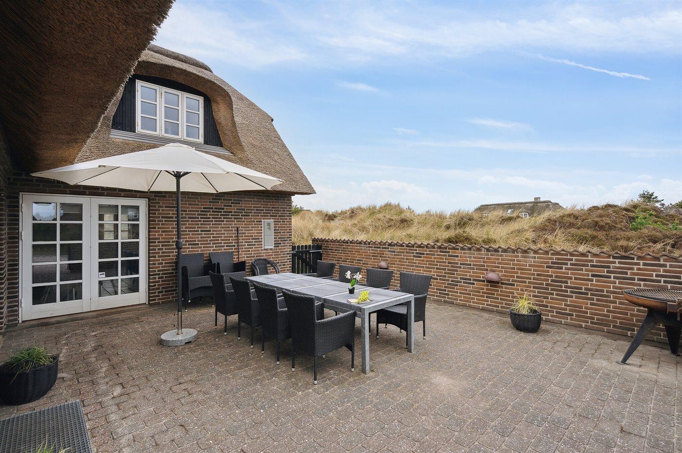De vakantiewoning is gelegen op een 2500 m² groot natuural grond. Afstand tot de zee 350 m. Dichtstbijzijnde winkel 1500 m. Bij de vakantiewoning hoort 40 m² terras. Waarvan in totaal 40 m² beschut terras. Schommel. Zandbak. Speelhuisje. Barbecue. Parkeerplaats bij het huis.