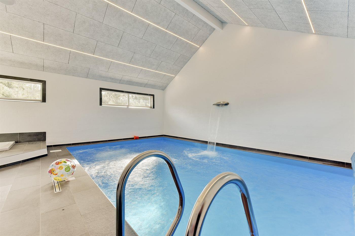 Het inpandige zwembad met bubbelzone en watervaldouche biedt de gelegenheid om heerlijk te spelen en gezellig samen te zijn. Het zwembad is 4 m breed, 6,6 m lang en tot 1,3 m diep. Het water heeft een temperatuur tussen de 24 en 28 °C. Er is vloerverwarming in het zwembadgebied.