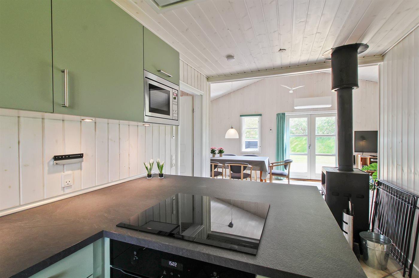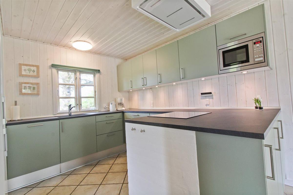 De keuken is uitgerust met koelkast Er zijn 4 keramische kookplaten, heteluchtoven, magnetron en vaatwasser.