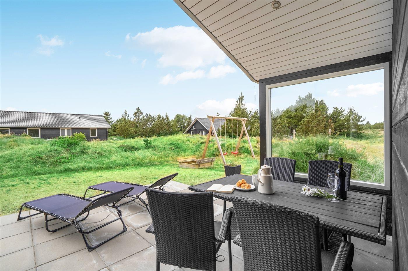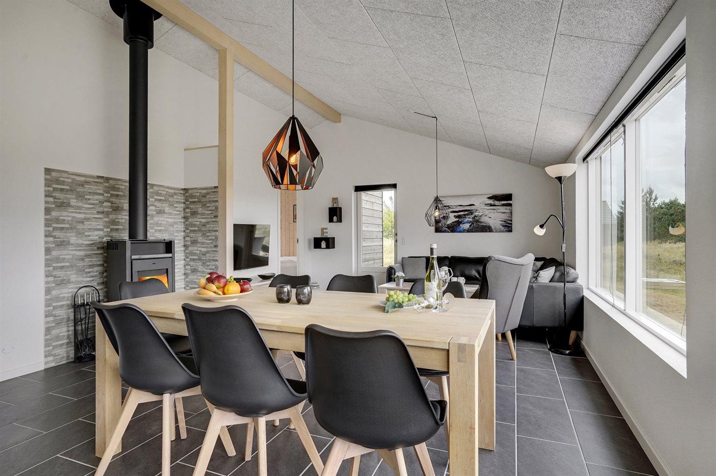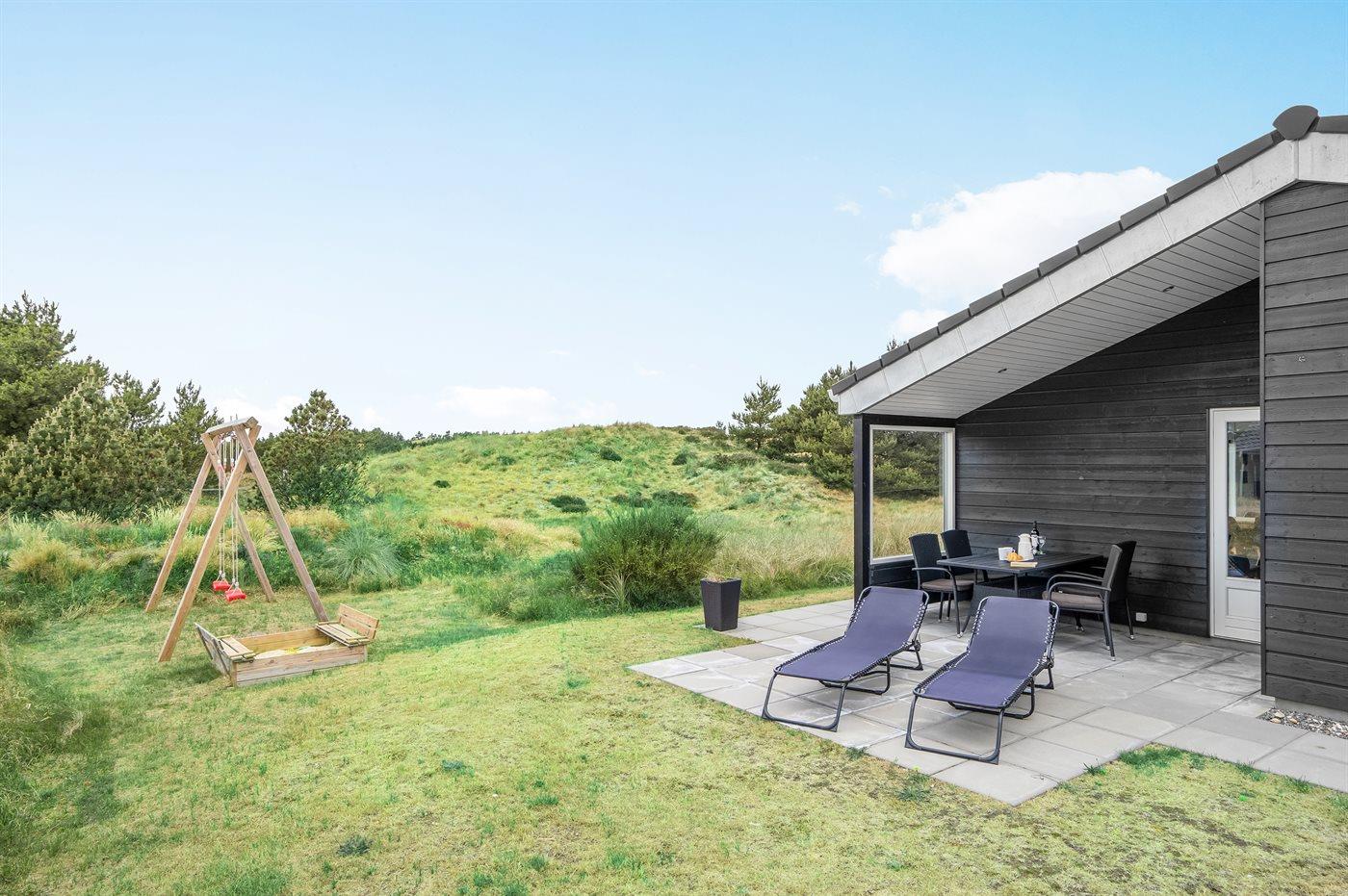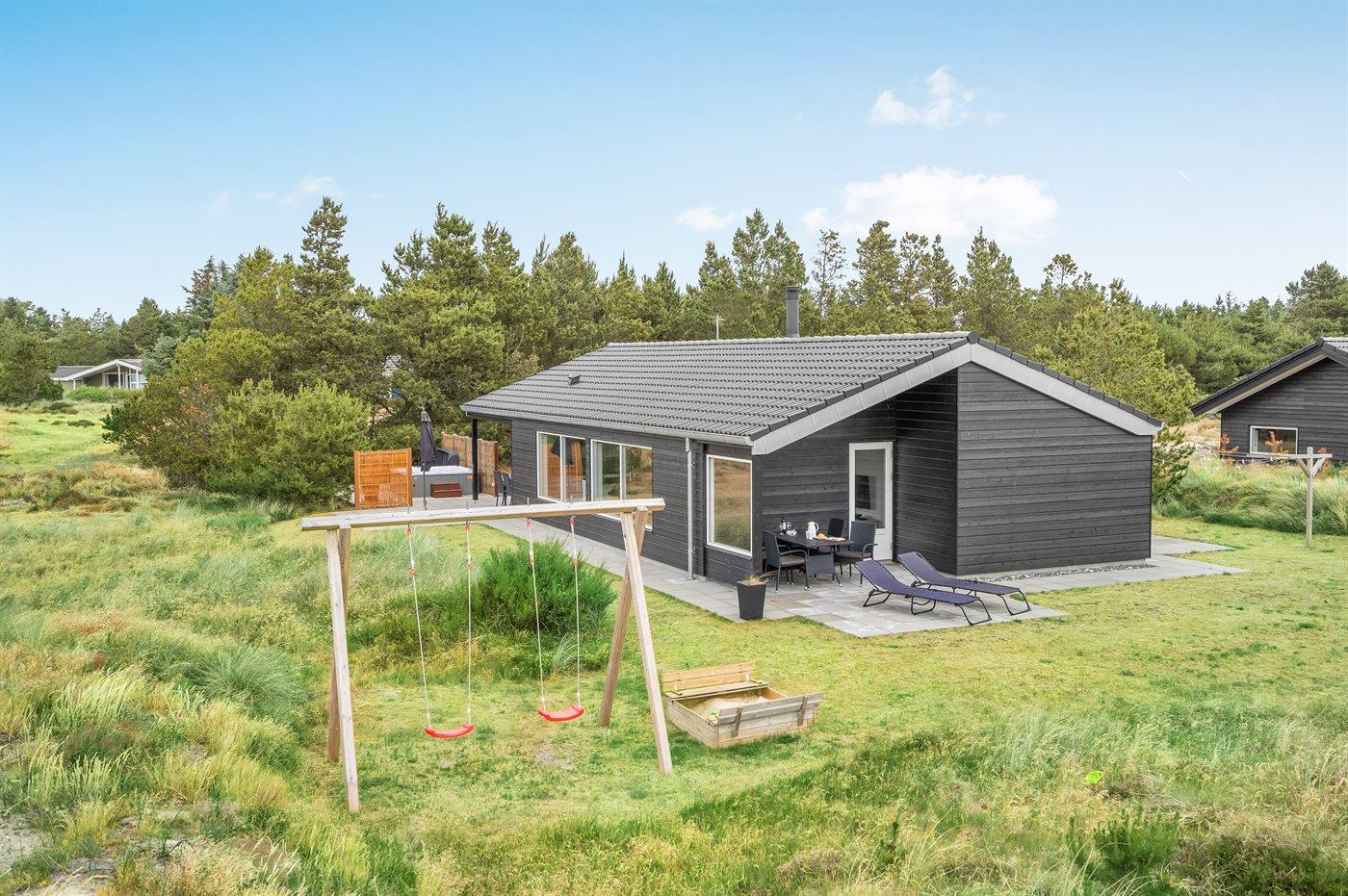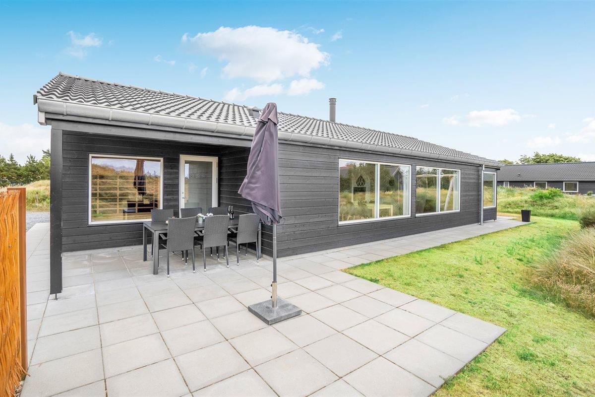 Comfortabel vakantiehuis in Blåvand met sauna, houtkachel en groot terras, ideaal voor gezinnen en huisdieren.