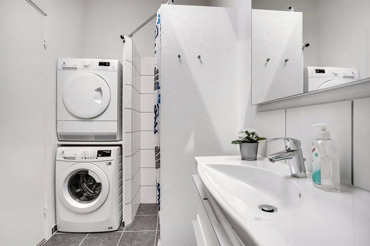 De keuken is uitgerust met koelkast Er is 4 inductiekookplaten, heteluchtoven, magnetron en vaatwasser. Vloerverwarming in de keuken.