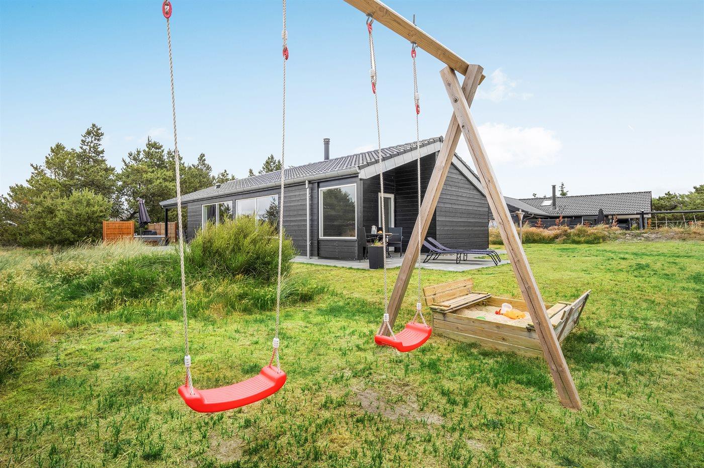 De vakantiewoning is gelegen op een 1648 m² groot natuural grond. Afstand tot de zee 1200 m. Dichtstbijzijnde winkel 1500 m. Bij de vakantiewoning hoort 80 m² terras. Daarnaast is er een 15 m² groot overdekt terras. Schommel. Zandbak. Barbecue. Parkeerplaats bij het huis.