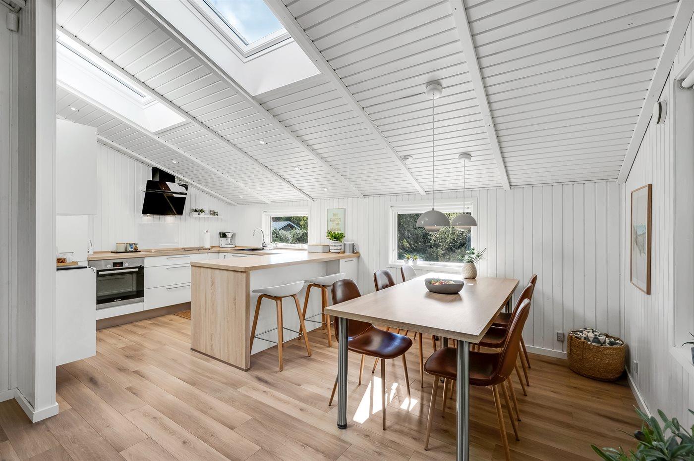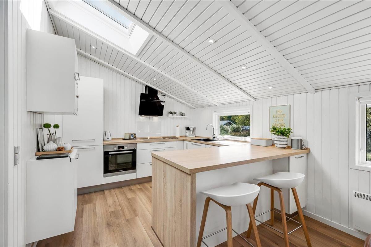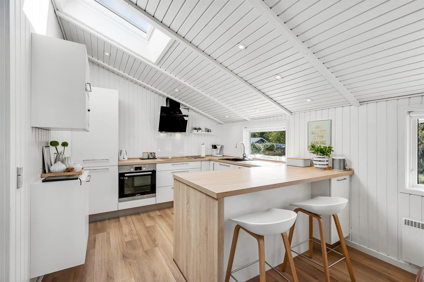 De keuken is uitgerust met koelkast Er is 4 inductiekookplaten, heteluchtoven, magnetron en vaatwasser.