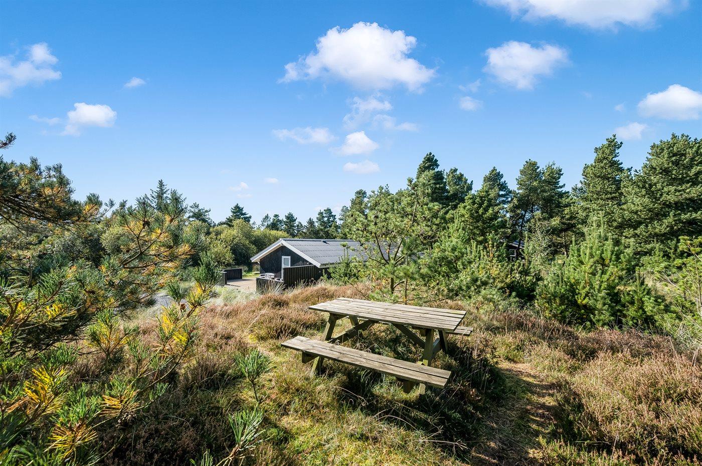 De vakantiewoning is gelegen op een 3008 m² groot natuural grond. Afstand tot de zee 2500 m. Dichtstbijzijnde winkel 1300 m. Bij de vakantiewoning hoort 97 m² terras. Daarnaast is er een 14 m² groot overdekt terras. Gereedschapsruimte. Schommel. Zandbak. Speeltoren. Barbecue. Parkeerplaats bij het huis.