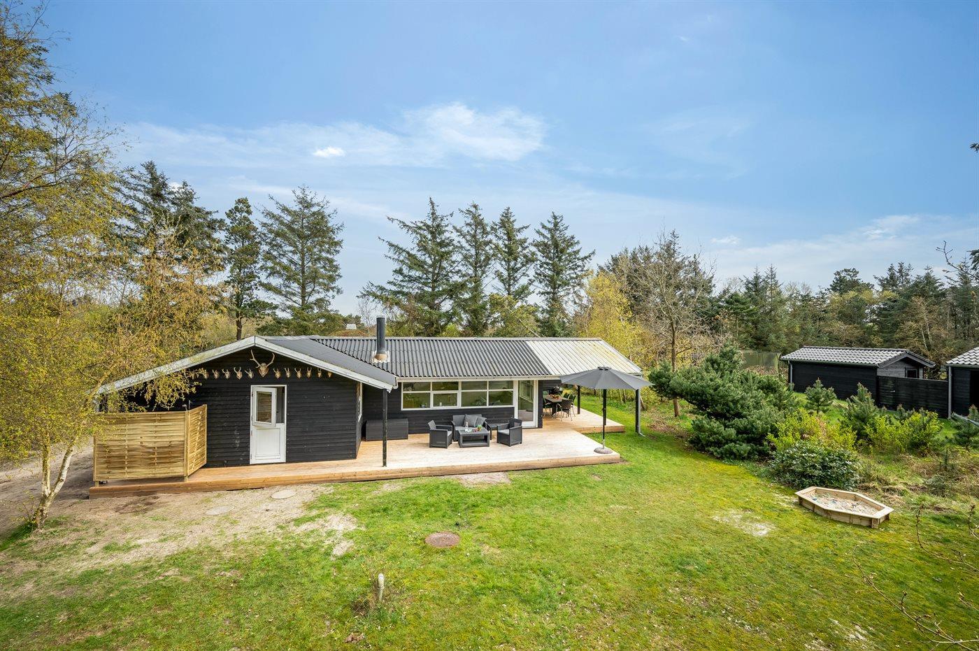 De vakantiewoning is gelegen op een 2250 m² groot natuural grond. Afstand tot de zee 500 m. Dichtstbijzijnde winkel 600 m. Bij de vakantiewoning hoort 20 m² terras. Daarnaast is er een 12 m² groot overdekt terras. Gereedschapsruimte. Schommel. Zandbak. Glijbaan.Vuurplaats. Barbecue. Parkeerplaats bij het huis.