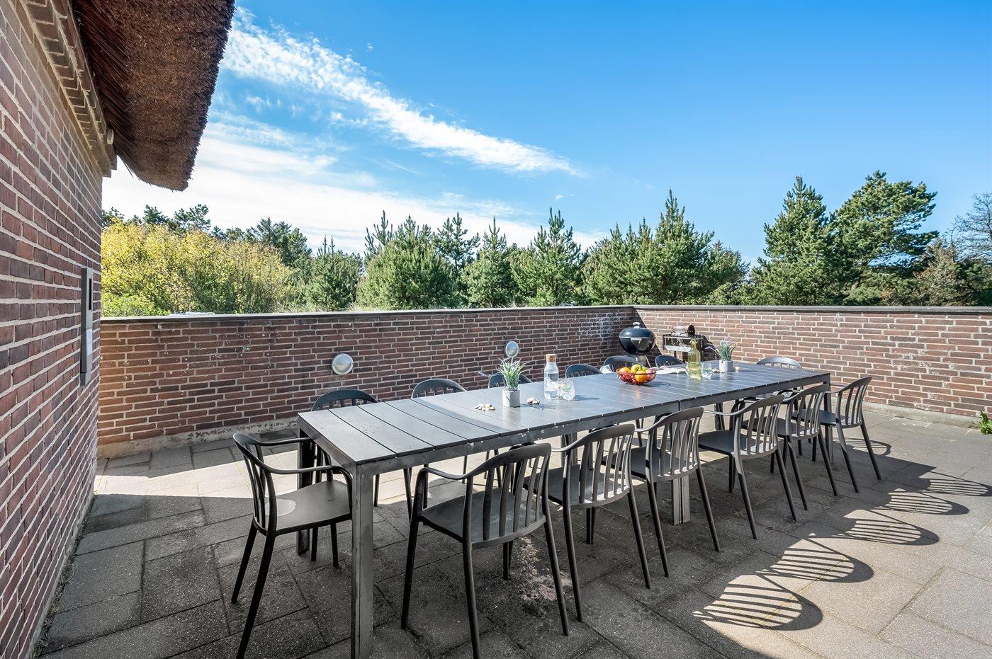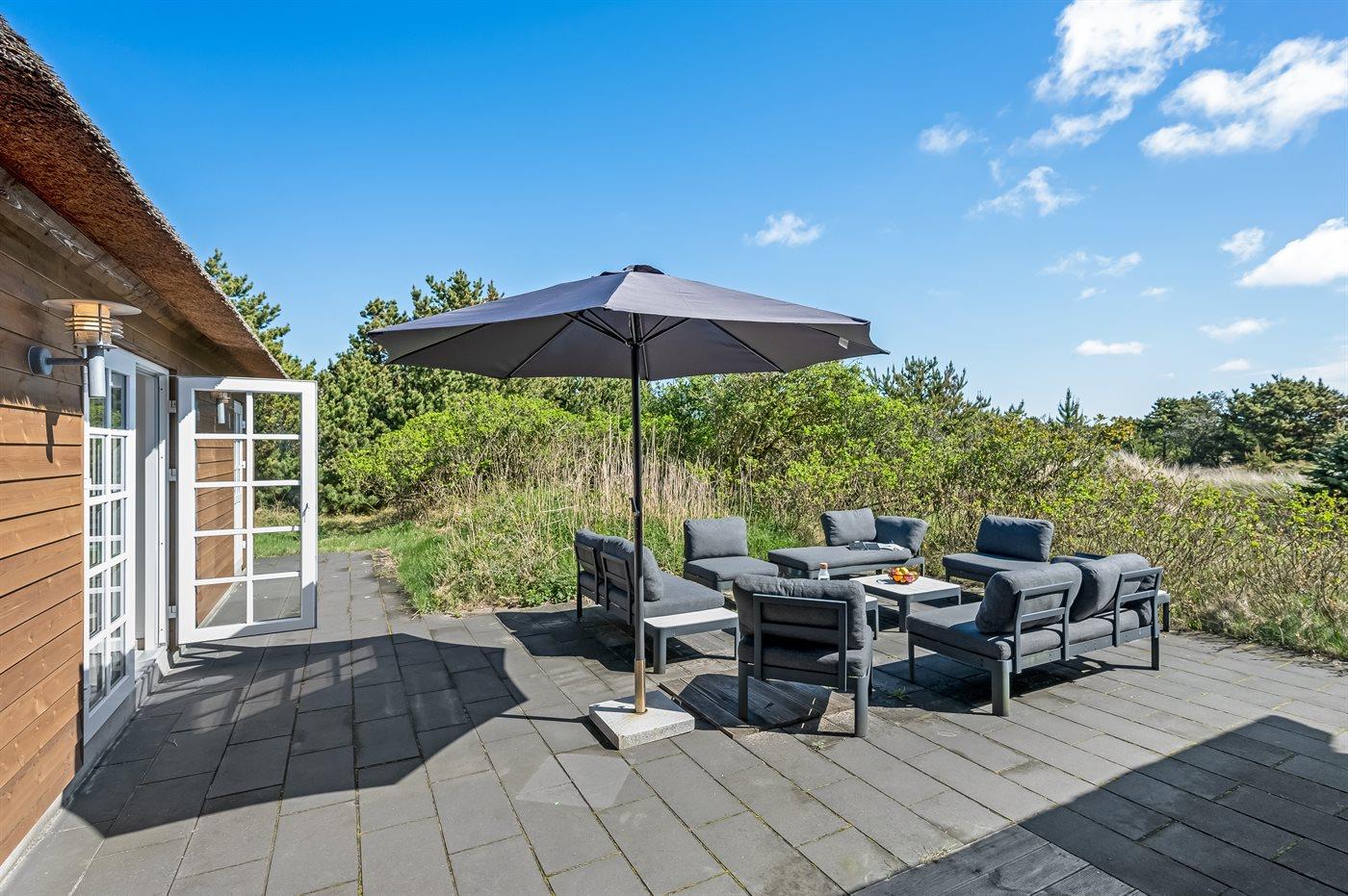 De vakantiewoning is gelegen op een 2500 m² groot natuural grond. Afstand tot de zee 300 m. Dichtstbijzijnde winkel 1500 m. Bij de vakantiewoning hoort 90 m² terras. Gereedschapsruimte. Schommel. Zandbak. Trampoline. Speeltoren. Glijbaan. 2 Barbecues. Het huis heeft een stopcontact voor het opladen van een elektrische auto. Oplaadstekker type 2. Parkeerplaats bij het huis.