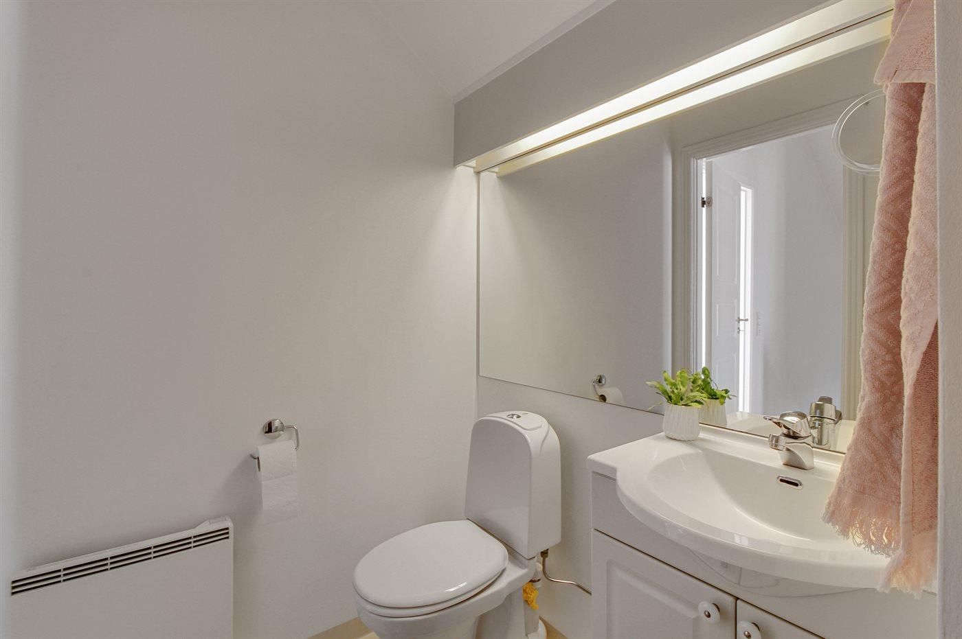 Er is 2 badkamers met douchehok en 2 toiletten. Er is vloerverwarming in 1 badkamer. De sauna biedt de gelegenheid tot ontspanning.