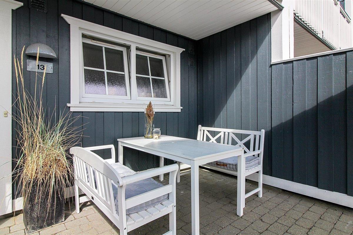 De vakantiewoning is gelegen op een 130 m² groot aangelegde tuin. Afstand tot de zee 1200 m. Dichtstbijzijnde winkel 200 m. Bij de vakantiewoning hoort 30 m² terras. Daarnaast is er een 10 m² groot overdekt terras. Balkon. Barbecue. Parkeerplaats bij het huis.