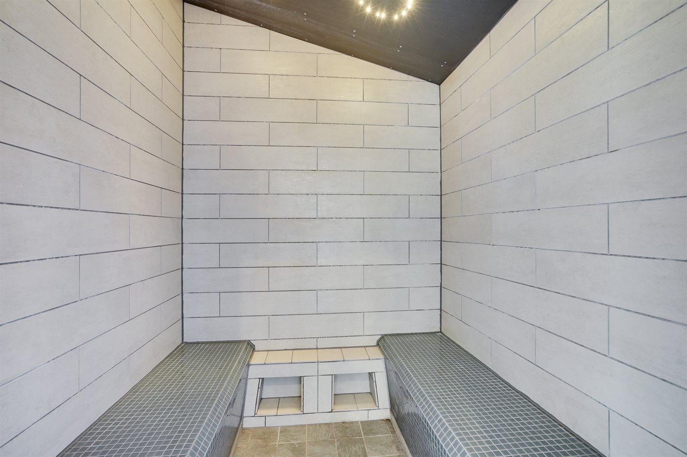 Er is 3 badkamers met douchehok en 3 toiletten. Er is vloerverwarming in 3 van de badkamers.Stoomcabine.