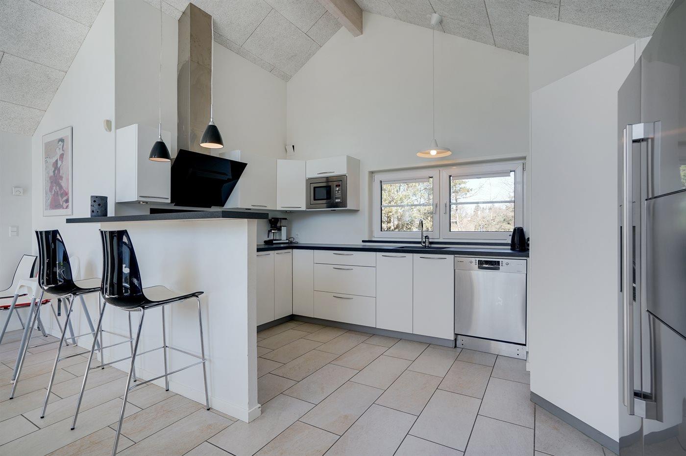 De keuken is uitgerust met amerikaanse koelkast Er zijn 4 keramische kookplaten, heteluchtoven, magnetron en vaatwasser.