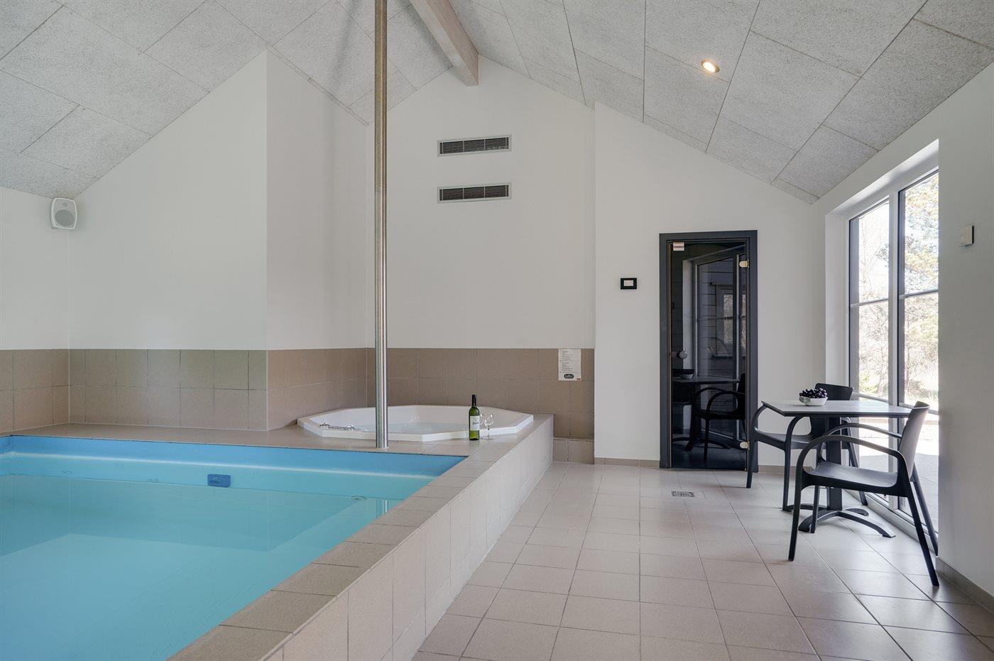 Het binnenzwembad biedt de gelegenheid om heerlijk te spelen en gezellig samen te zijn. Er is vloerverwarming in het zwembadgebied.