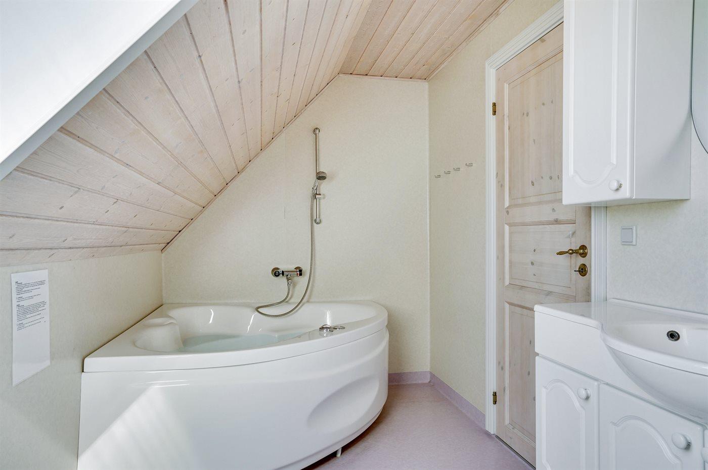 Er is 2 badkamers met douchehok en 2 toiletten, waarvan 1 gastentoilet. Er is vloerverwarming in 1 badkamer. De infraroodsauna biedt de gelegenheid tot ontspanning.