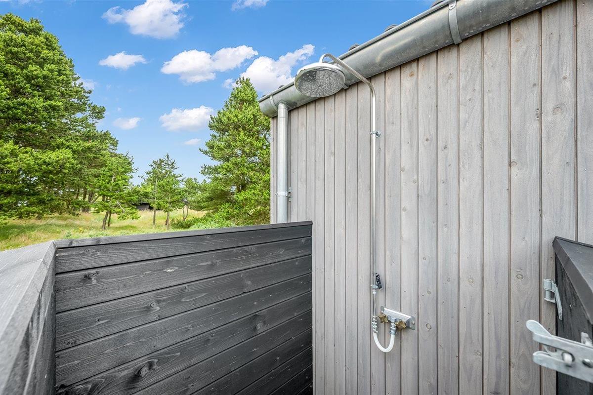 De vakantiewoning is gelegen op een 1800 m² groot natuural grond. Afstand tot de zee 1800 m. Dichtstbijzijnde winkel 800 m. Bij de vakantiewoning hoort 120 m² terras. Daarnaast is er een 16 m² groot overdekt terras. Gereedschapsruimte. Schommel. Zandbak. Buitendouche. U kunt buiten een maaltijd bereiden in de buitenkeuken. Barbecue. Carport ter beschikking. Het huis heeft een stopcontact voor het opladen van een elektrische auto. Parkeerplaats bij het huis.