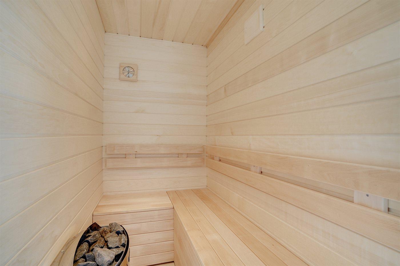 Er is 3 badkamers met douchehok en 3 toiletten. Er is vloerverwarming in 1 badkamer. De sauna biedt de gelegenheid tot ontspanning.