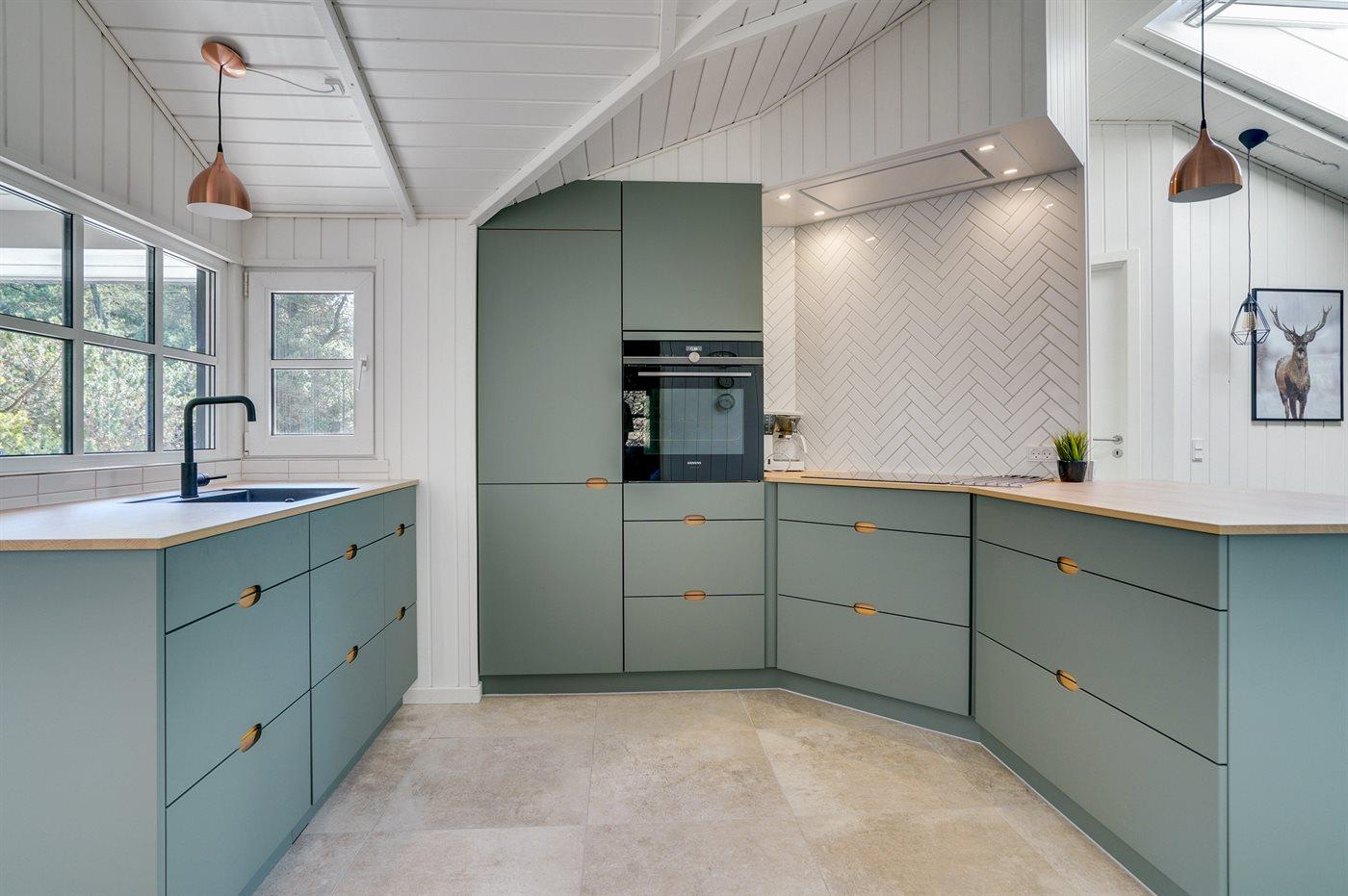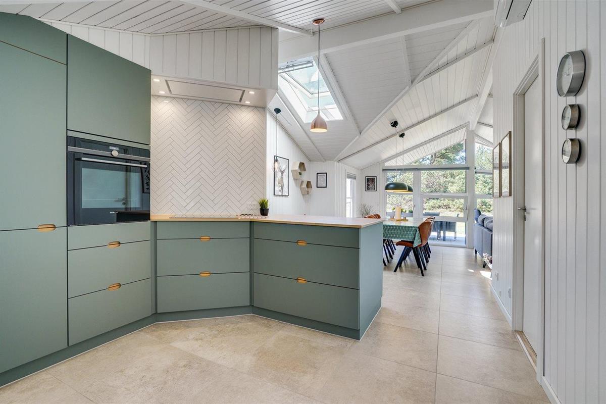 De keuken is uitgerust met koelkast Er is 4 inductiekookplaten, heteluchtoven, magnetron en vaatwasser.