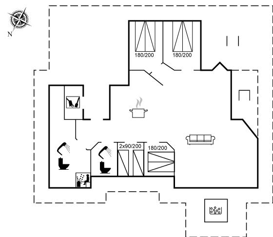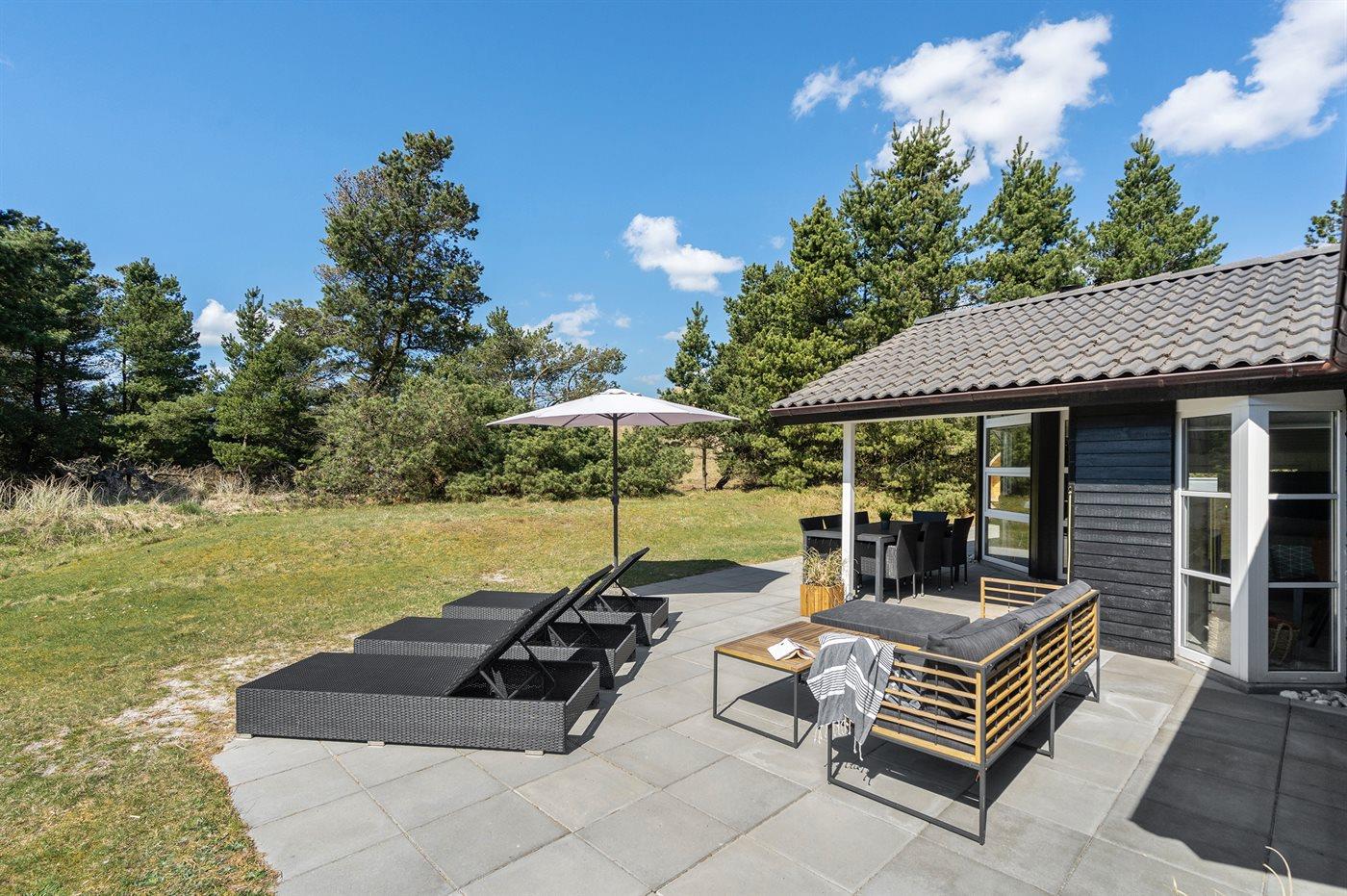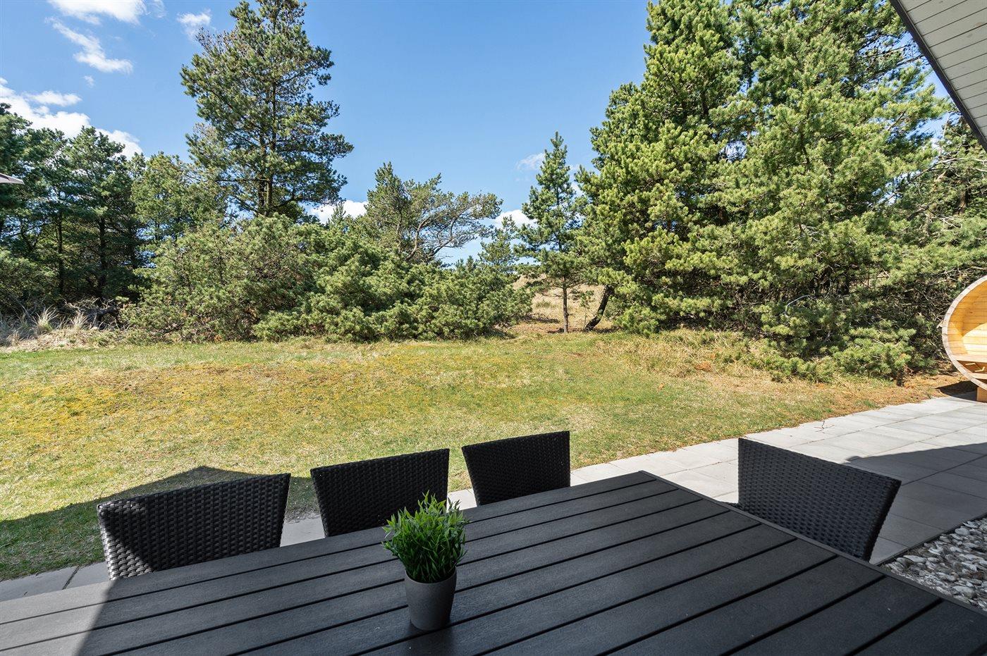 De vakantiewoning is gelegen op een 1560 m² groot natuural grond. Afstand tot de zee 900 m. Dichtstbijzijnde winkel 100 m. Bij de vakantiewoning hoort 150 m² terras. Daarnaast is er een 20 m² groot overdekt terras. Gereedschapsruimte. Schommel. Zandbak. Buitendouche. Barbecue. Het huis heeft een stopcontact voor het opladen van een elektrische auto. Parkeerplaats bij het huis.