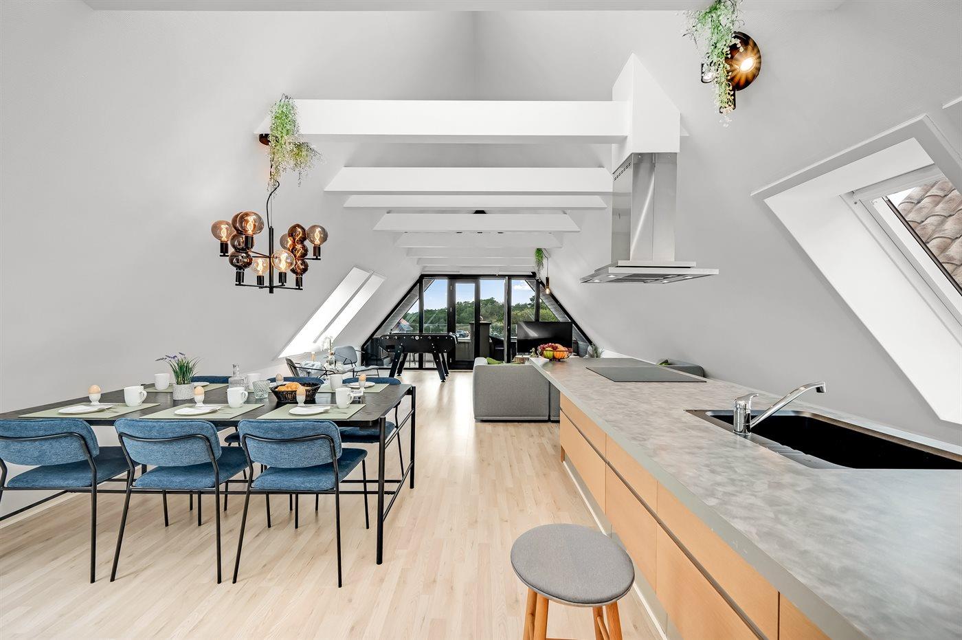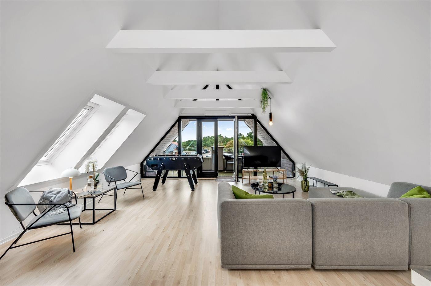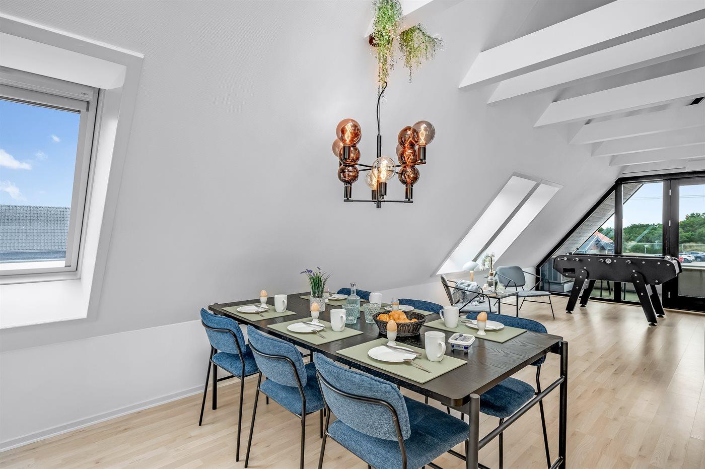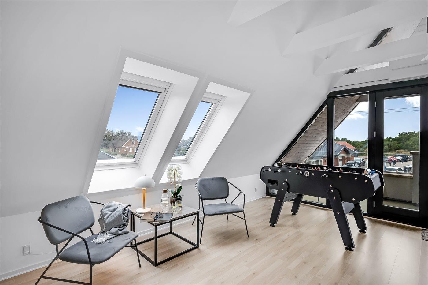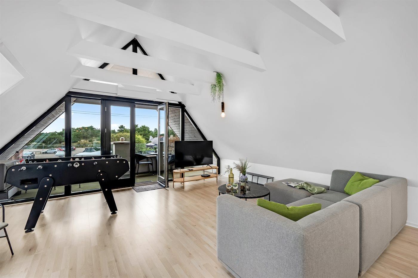 Modern vakantieappartement in Blåvand, dichtbij zee en winkels, met balkon, tafelvoetbal en huisdiervriendelijk.