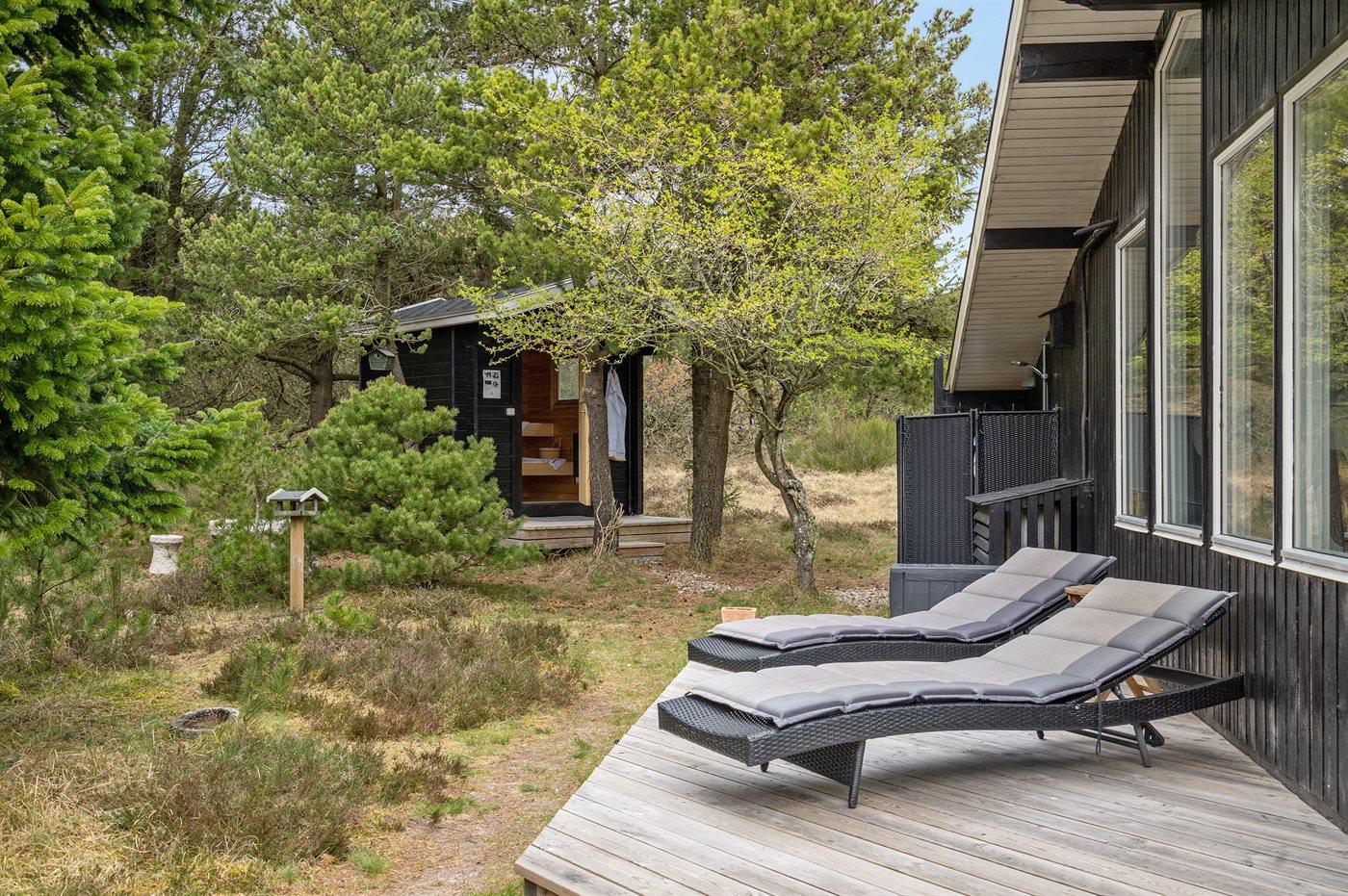 De vakantiewoning is gelegen op een 2522 m² groot natuural grond. Afstand tot de zee 2200 m. Dichtstbijzijnde winkel 2000 m. Bij de vakantiewoning hoort terras. Gereedschapsruimte. Schommel. Zandbak. Speelhuisje. Buitensauna. Buitendouche. U kunt buiten een maaltijd bereiden in de buitenkeuken. Barbecue. Het huis heeft een stopcontact voor het opladen van een elektrische auto. Oplaadstekker type 2. Met 11 kW-laadvermogen. Parkeerplaats bij het huis.