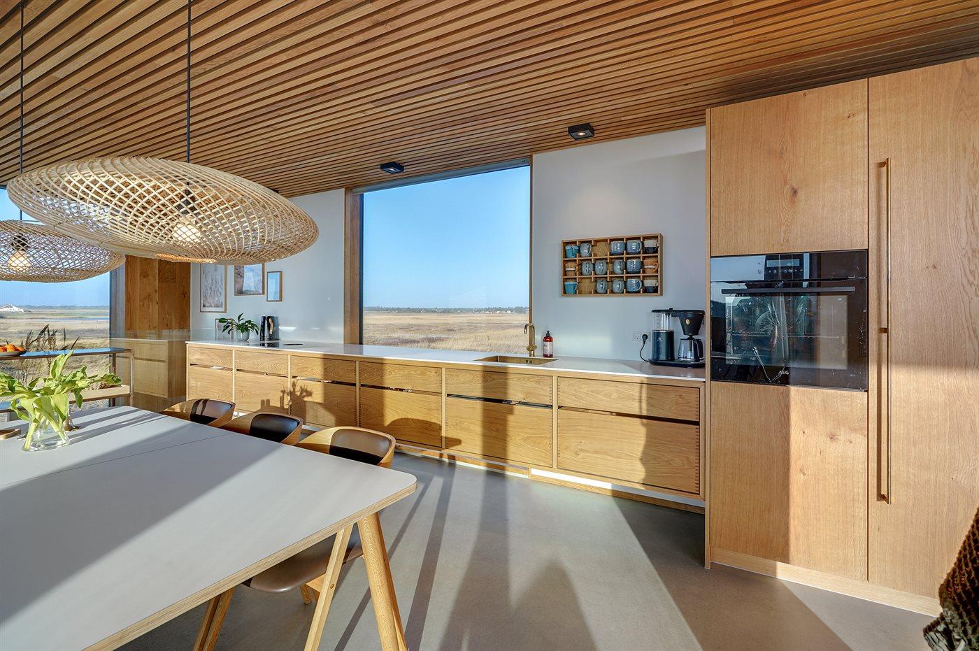 De keuken is uitgerust met koelkast Er is 4 inductiekookplaten, heteluchtoven en vaatwasser.