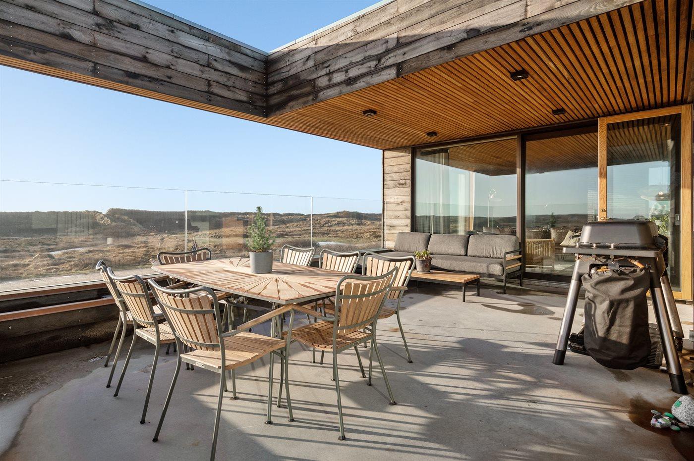 De vakantiewoning is gelegen op een 25000 m² groot Duingrond. natuural grond. Afstand tot de zee 100 m. Dichtstbijzijnde winkel 2100 m. Er is een golfbaan op een afstand van 7700 m. Bij de vakantiewoning hoort terras. Daarnaast is er een overdekt terras. Afstand tot speelplaats 2100 m. Buitendouche. Barbecue. Het huis heeft een stopcontact voor het opladen van een elektrische auto. CEE-stekker. Parkeerplaats bij het huis.