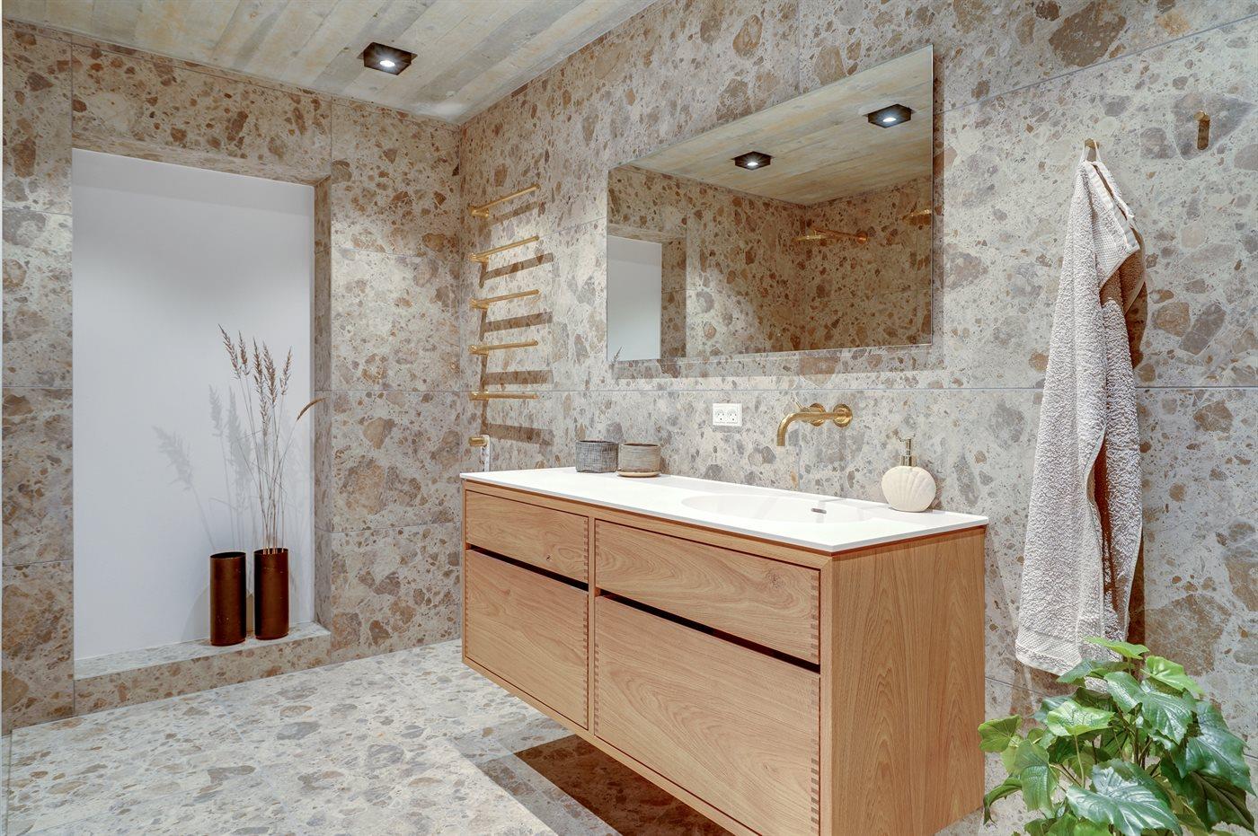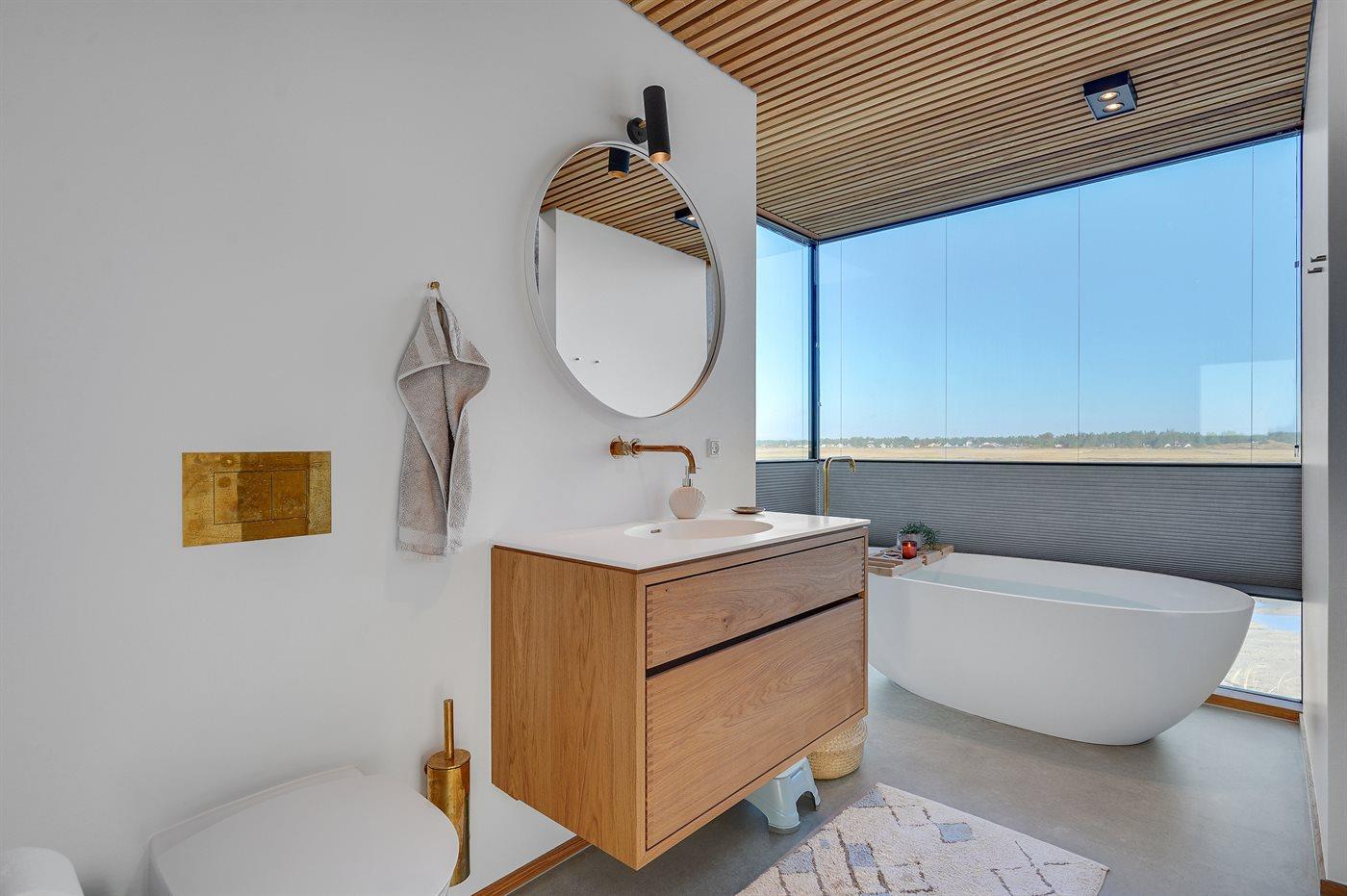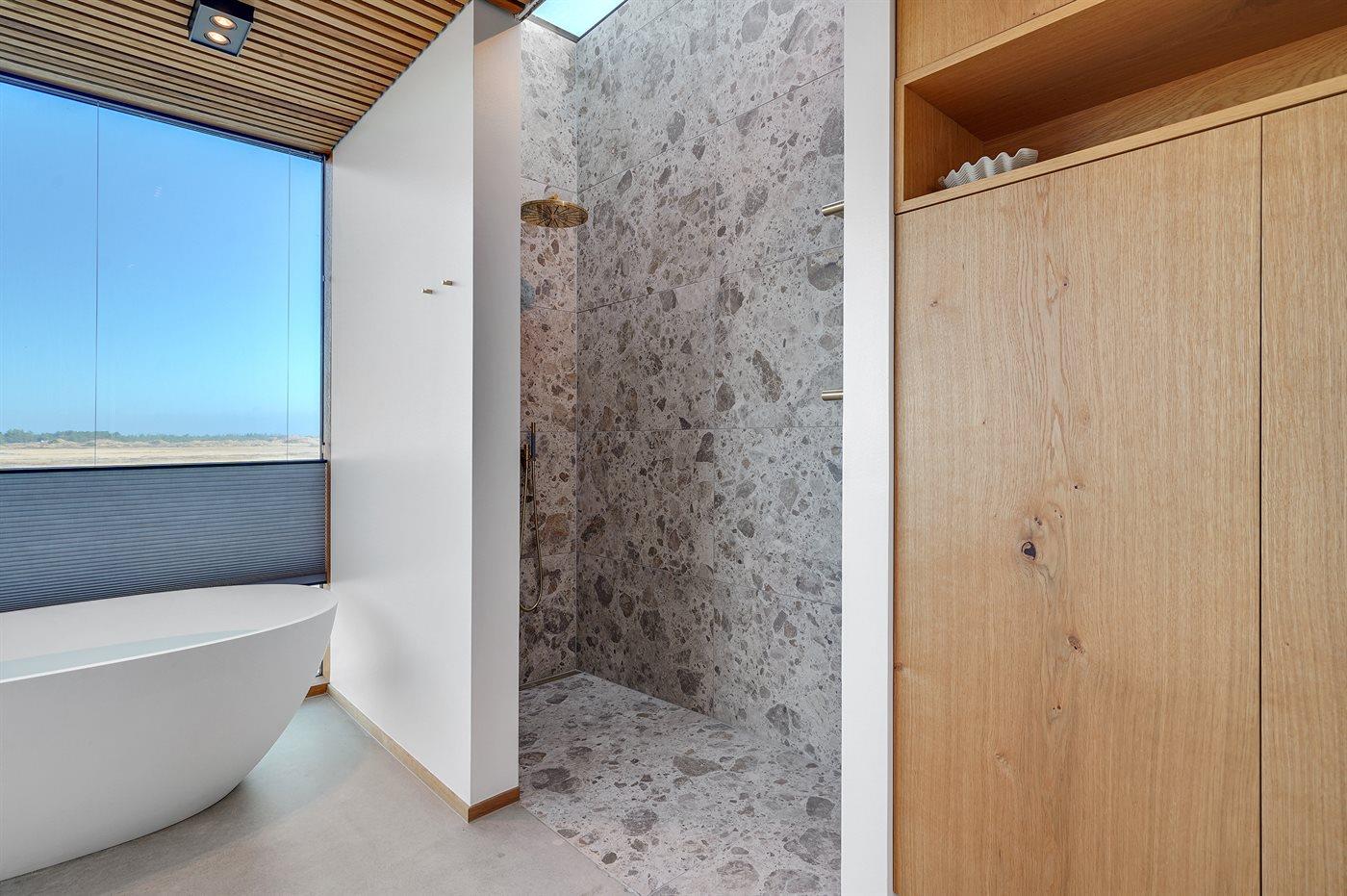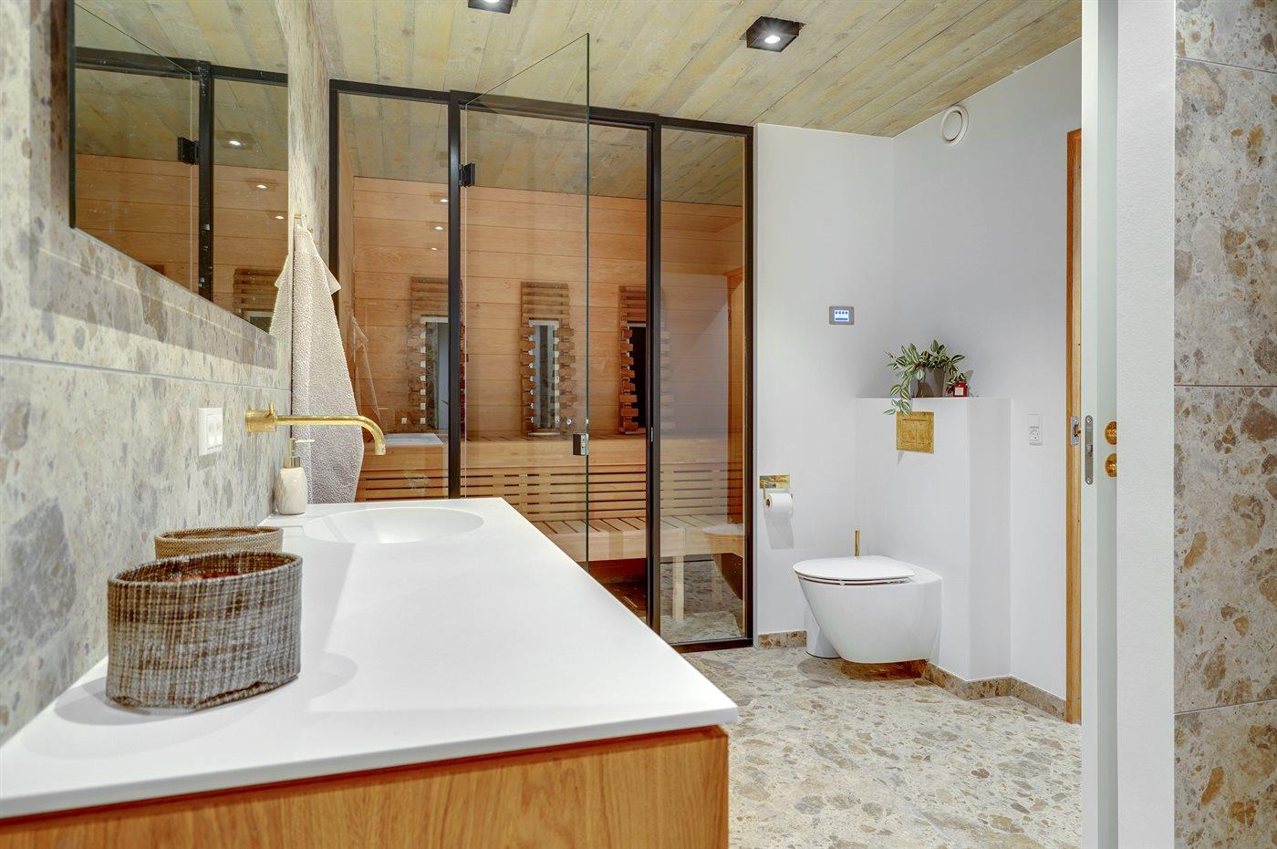 Er is 2 badkamers met douchehok en 2 toiletten. Er is vloerverwarming in 2 van de badkamers.. Badkuip. De sauna biedt de gelegenheid tot ontspanning.