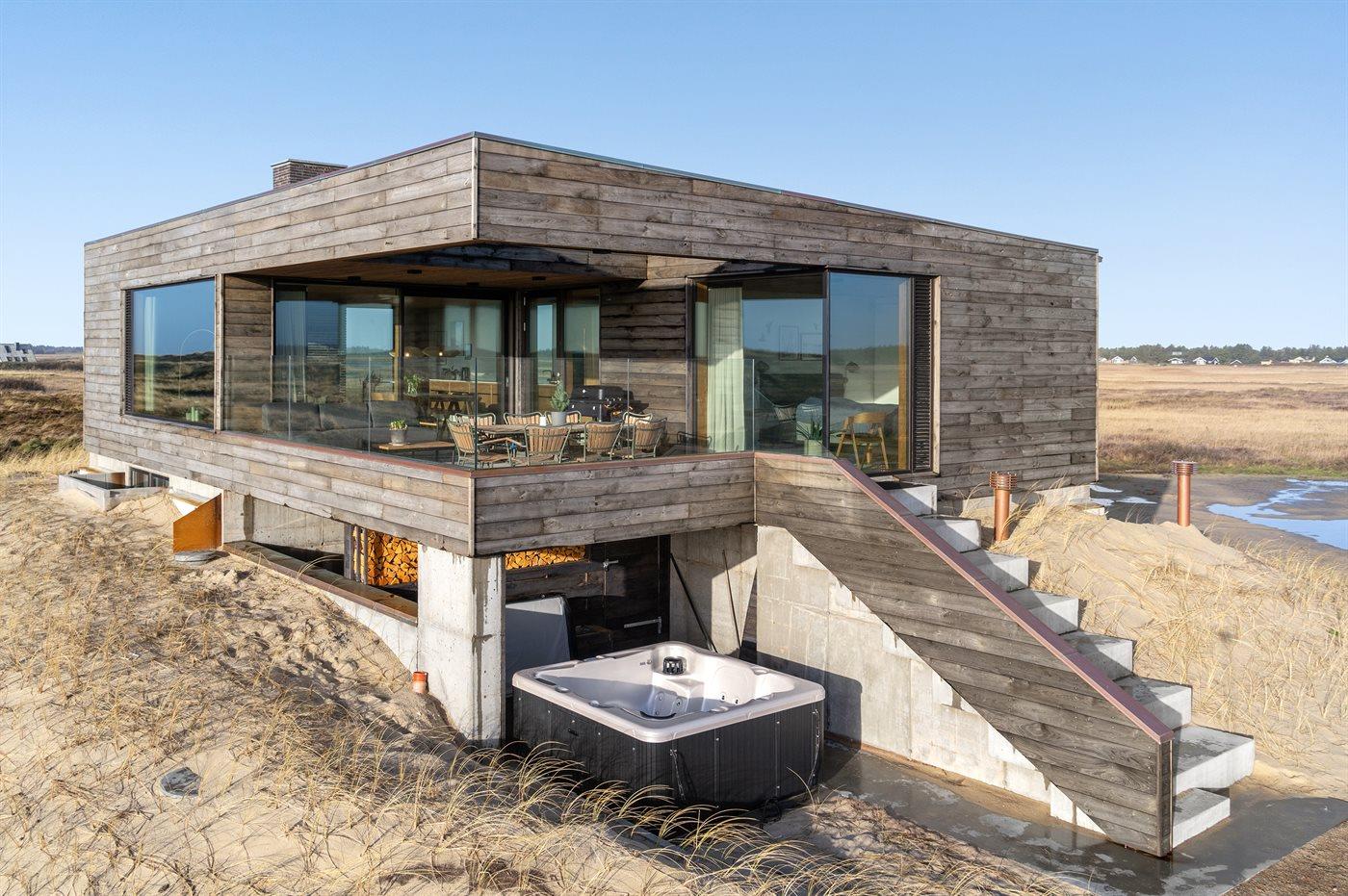 Modern vakantiehuis nabij zee met luxe faciliteiten en ontspanning voor zes personen.