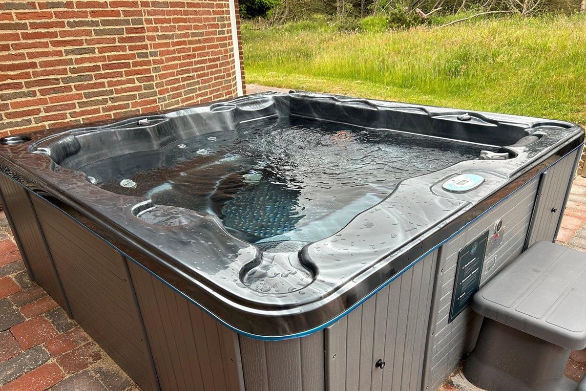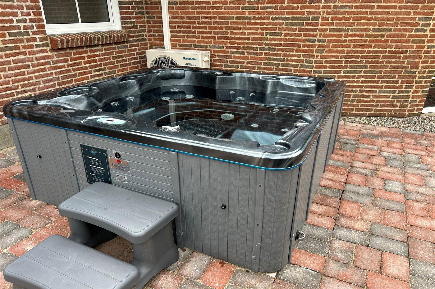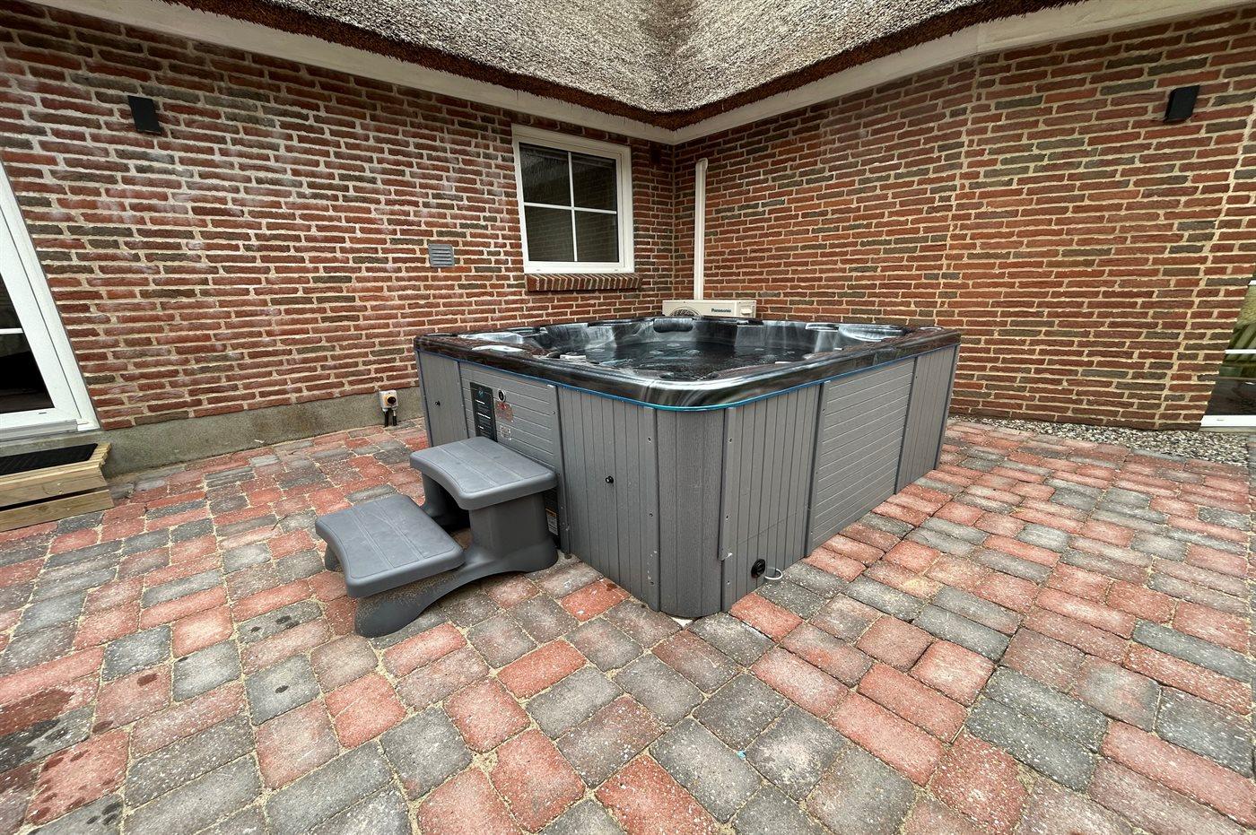 Het buitenbubbelbad (standwater) biedt ontspanning aan 4 personen.