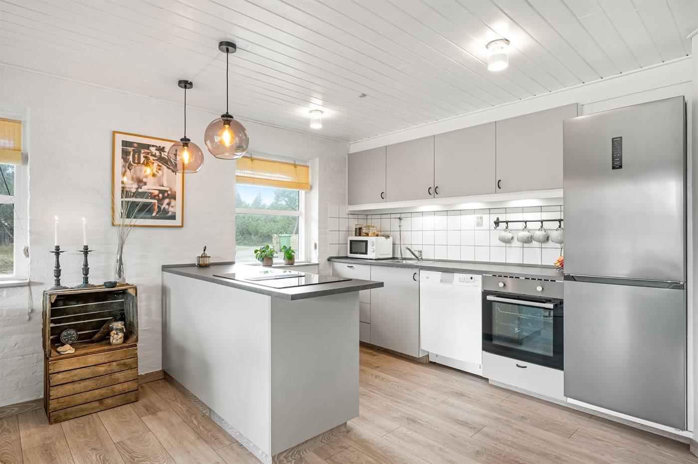 De keuken is uitgerust met koelkast Er zijn 4 keramische kookplaten, heteluchtoven, magnetron en vaatwasser.