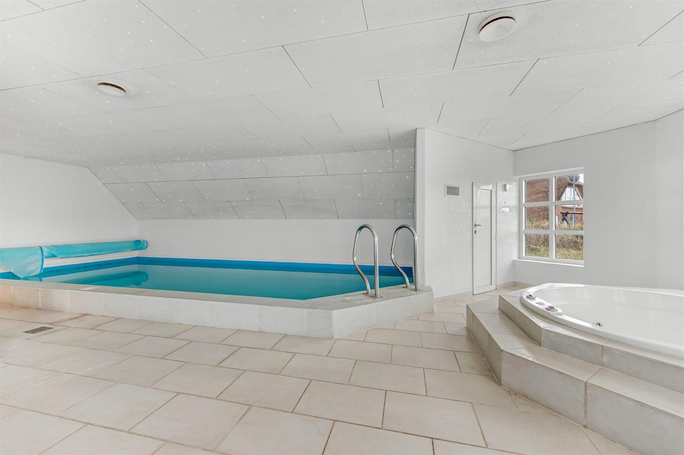 Ruim vakantiehuis in Blåvand met binnenzwembad, sauna en grote tuin, vlak bij zee.