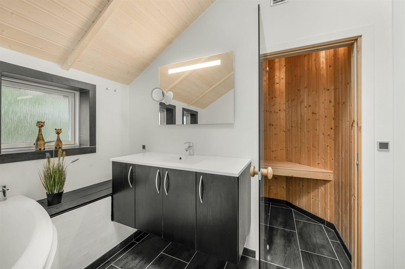 Er is 2 badkamers met douchehok en 2 toiletten. Er is vloerverwarming in 2 van de badkamers. De sauna biedt de gelegenheid tot ontspanning.
