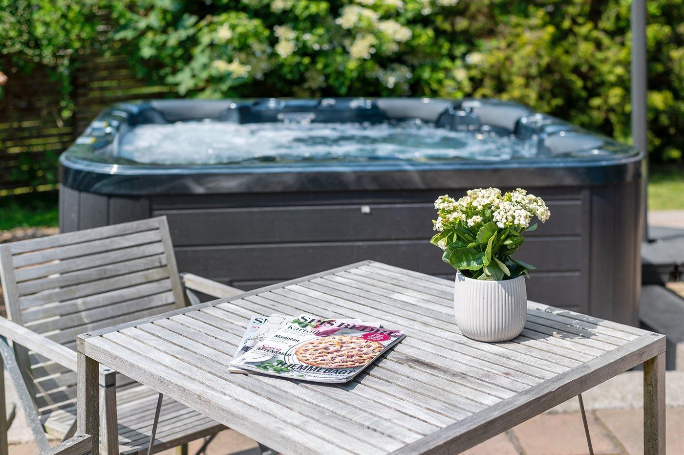 Het binnenbubbelbad (vulwater) biedt ontspanning aan 2 personen.Het buitenbubbelbad (standwater) biedt ontspanning aan 6 personen.