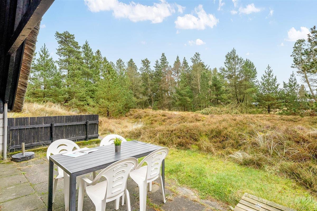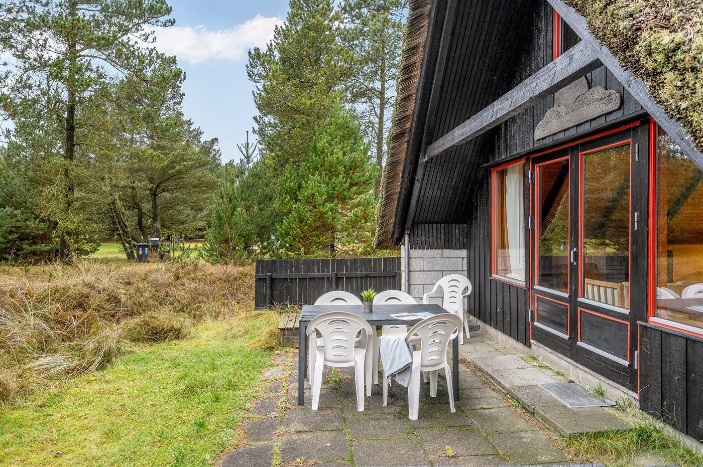 De vakantiewoning is gelegen op een 2500 m² groot Duingrond. Afstand tot de zee 2000 m. Dichtstbijzijnde winkel 900 m. Er is een golfbaan op een afstand van 6000 m. Bij de vakantiewoning hoort terras. Zandbak. Barbecue. Parkeerplaats bij het huis.
