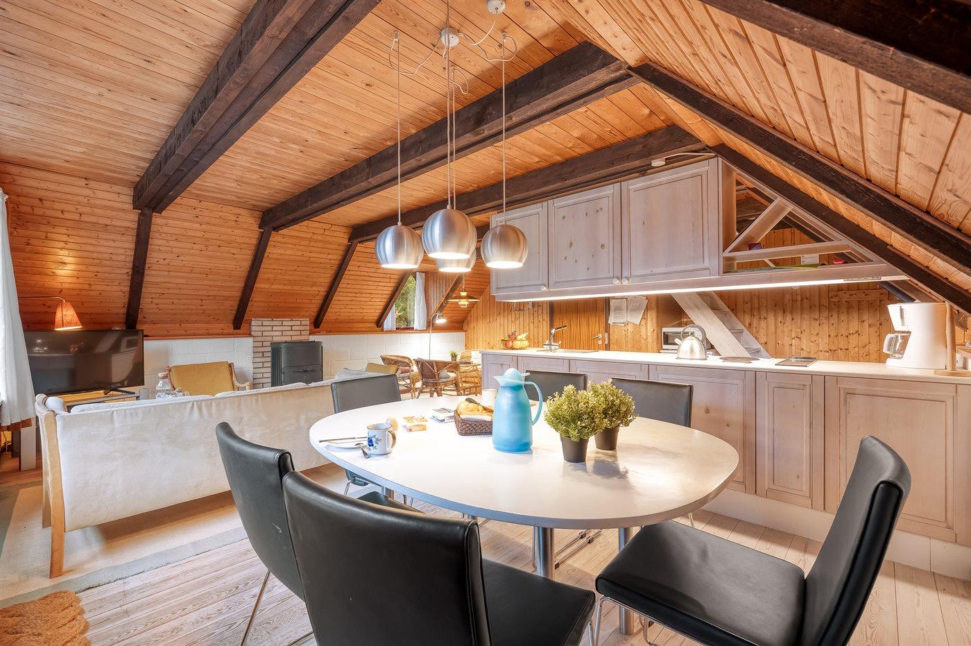 Er zijn in totaal 2 slaapkamers. De slaapplaatsen zijn als volgt verdeeld: 2 slaapplaatsen in tweepersoonsbed. 4 slaapplaatsen in eenpersoonsbedden. 2 van deze slaapplaatsen bevinden zich in de open slaapzolder.